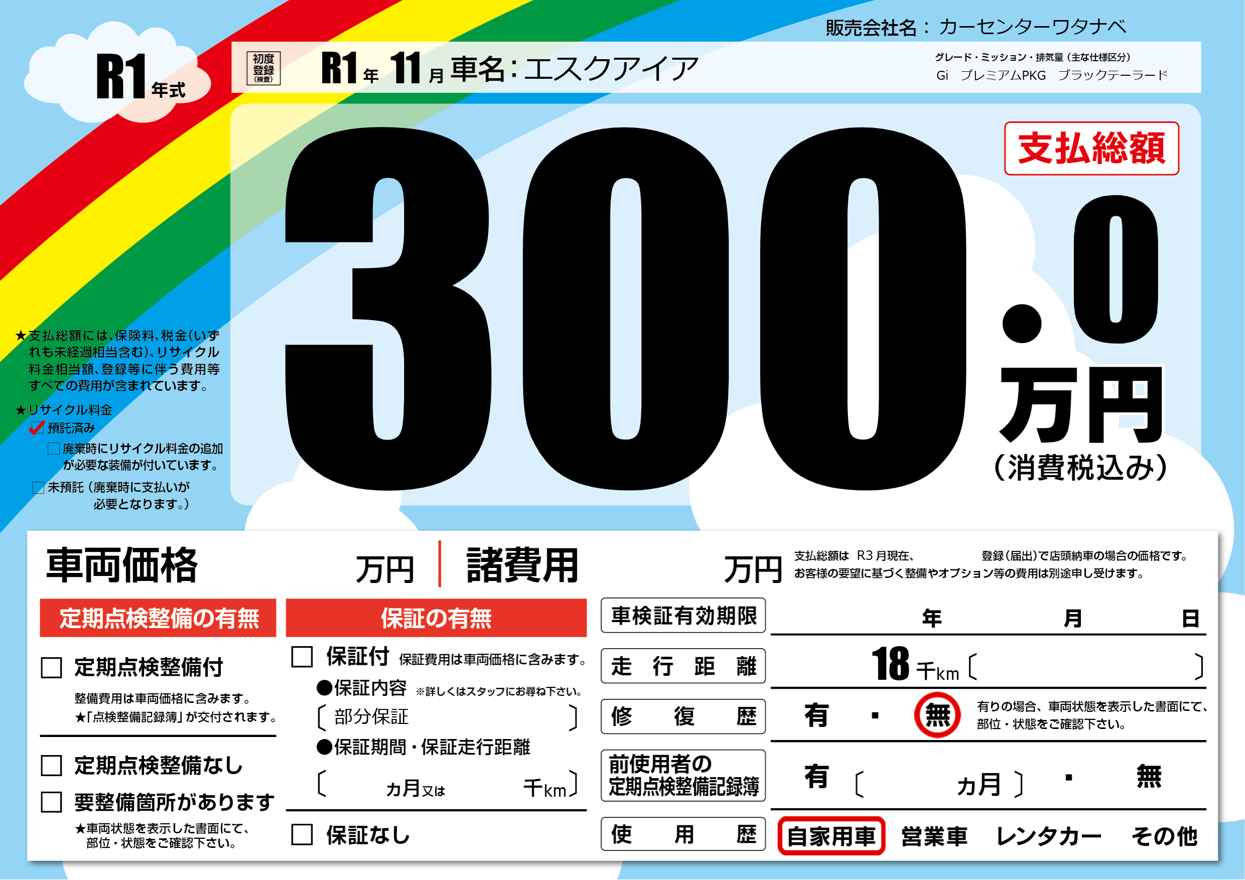 | 走行キロ | 1.8万km | 初年度登録 | R1年11月 |