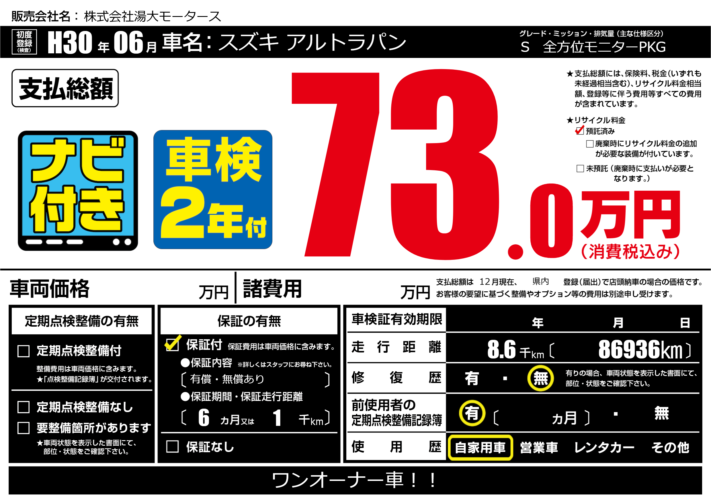 | 初年度登録 | H30年06月 | ||