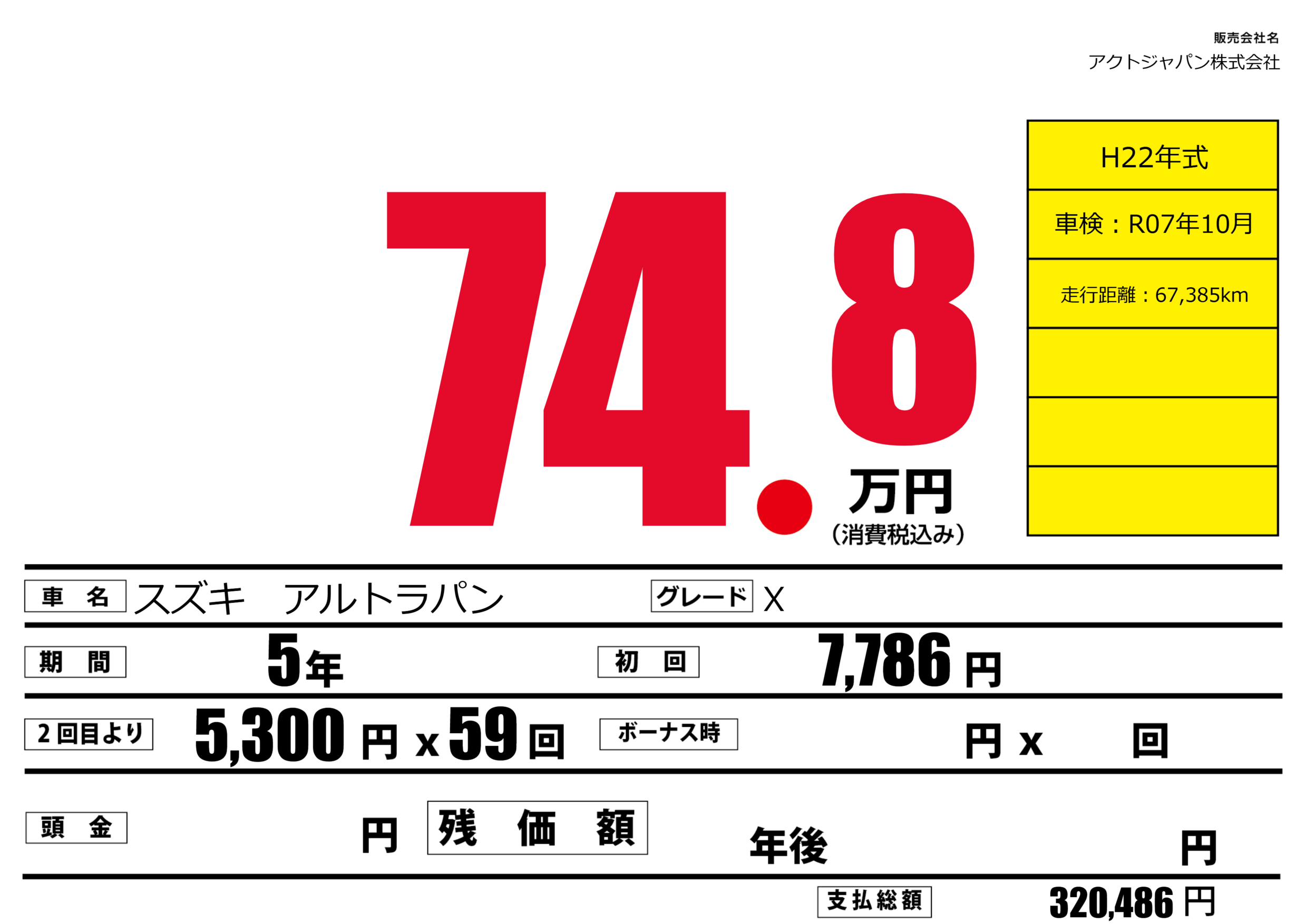 | 車名 | スズキ アルトラパン | グレード ミッション 排気量 |