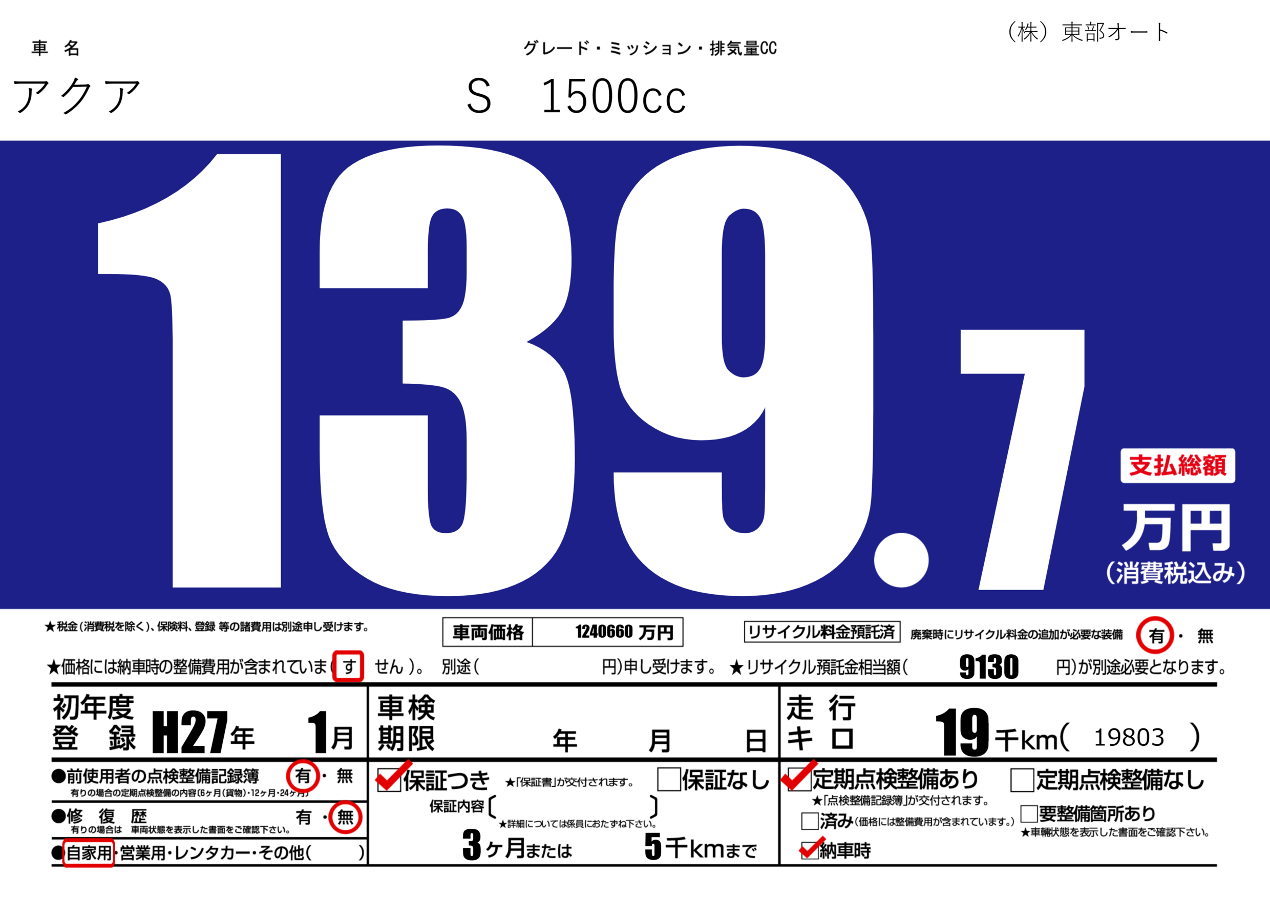 保証付き 保証内容(---) 3ヶ月または(5)千kmまで |
