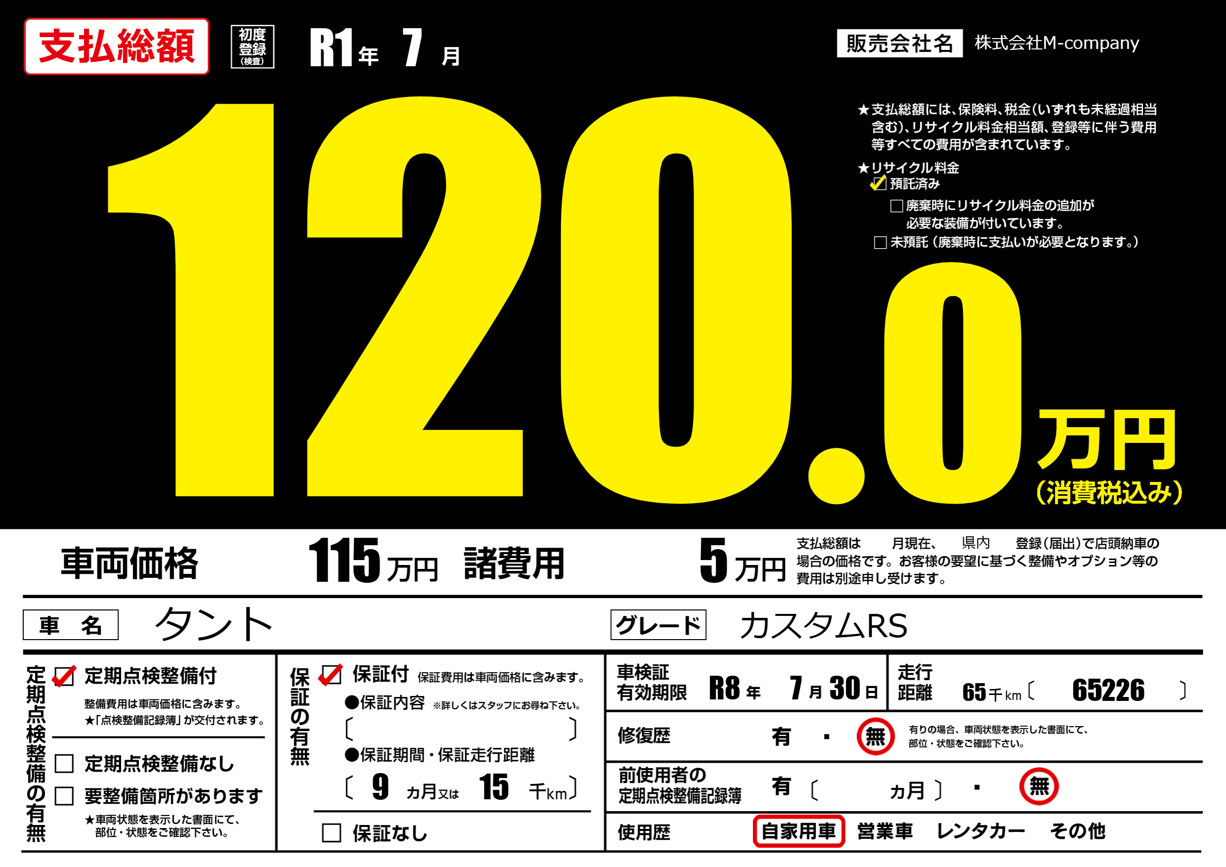 なし | 車検制限 | R8年7月30月 |