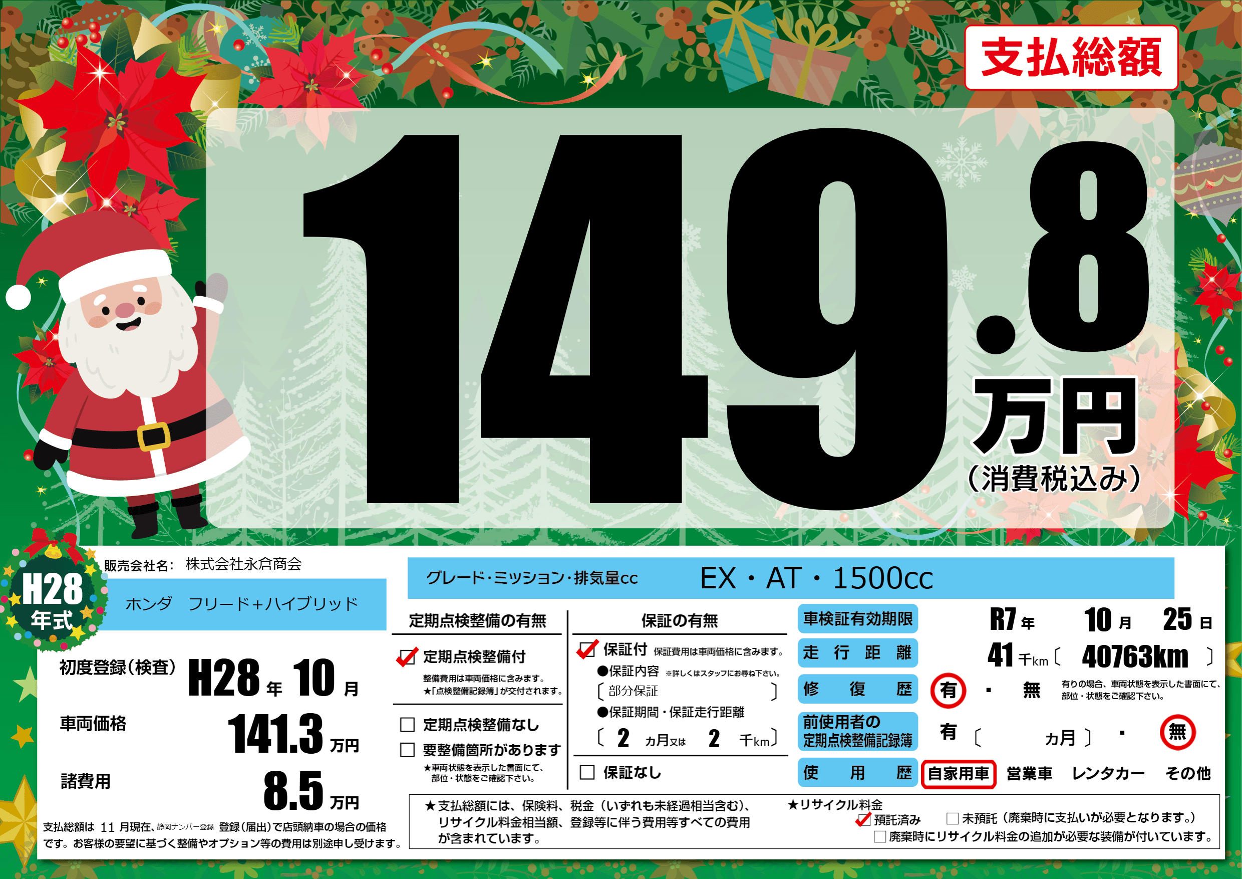なし | 車検制限 | R7年10月25月 |