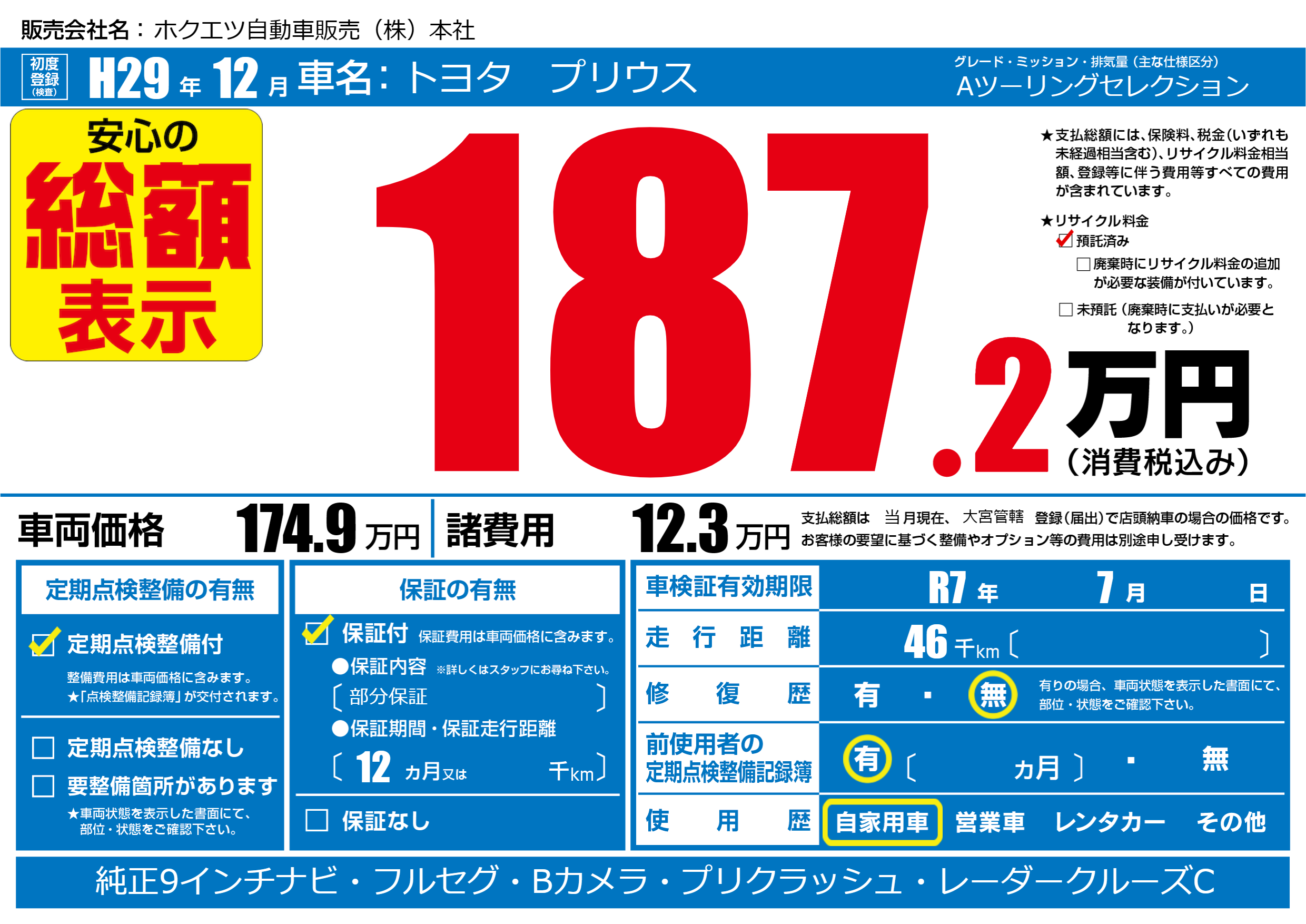 | 車検制限 | R7年 7月 - 日 | ||