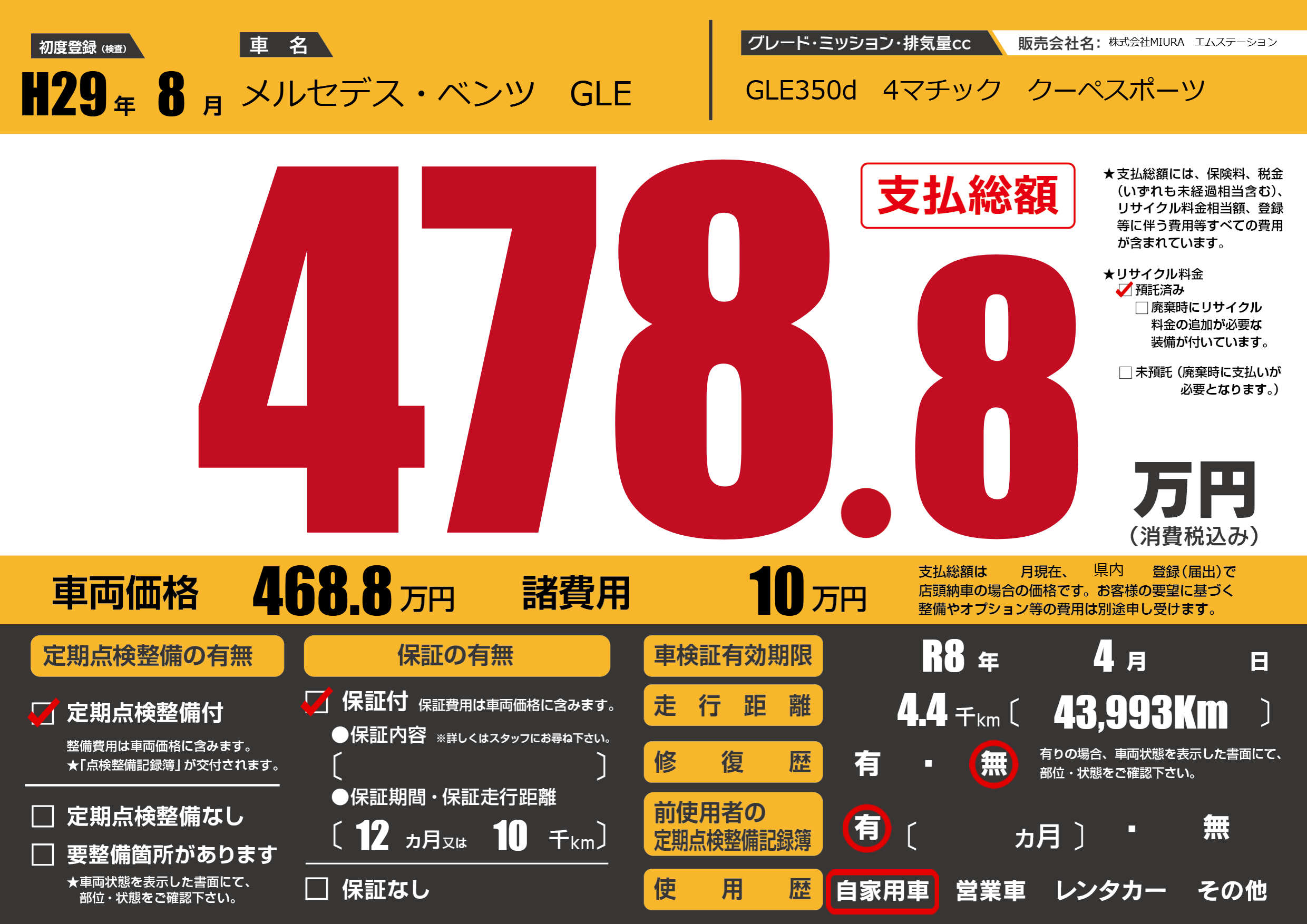 なし | 車検制限 | R8年4月---月 |