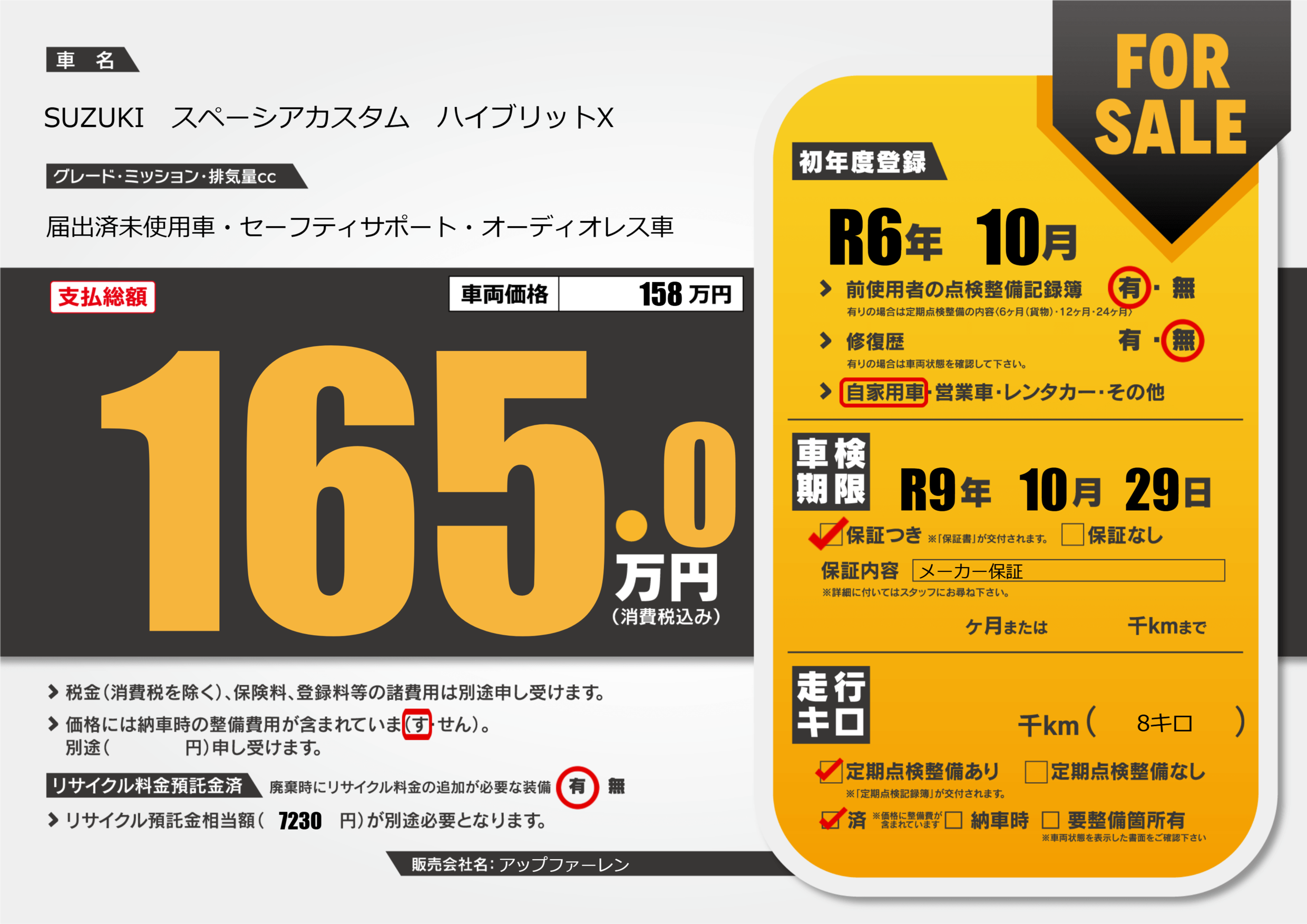 | 定期点検整備 | 定期点検整備あり 定期点検整備済み | ||