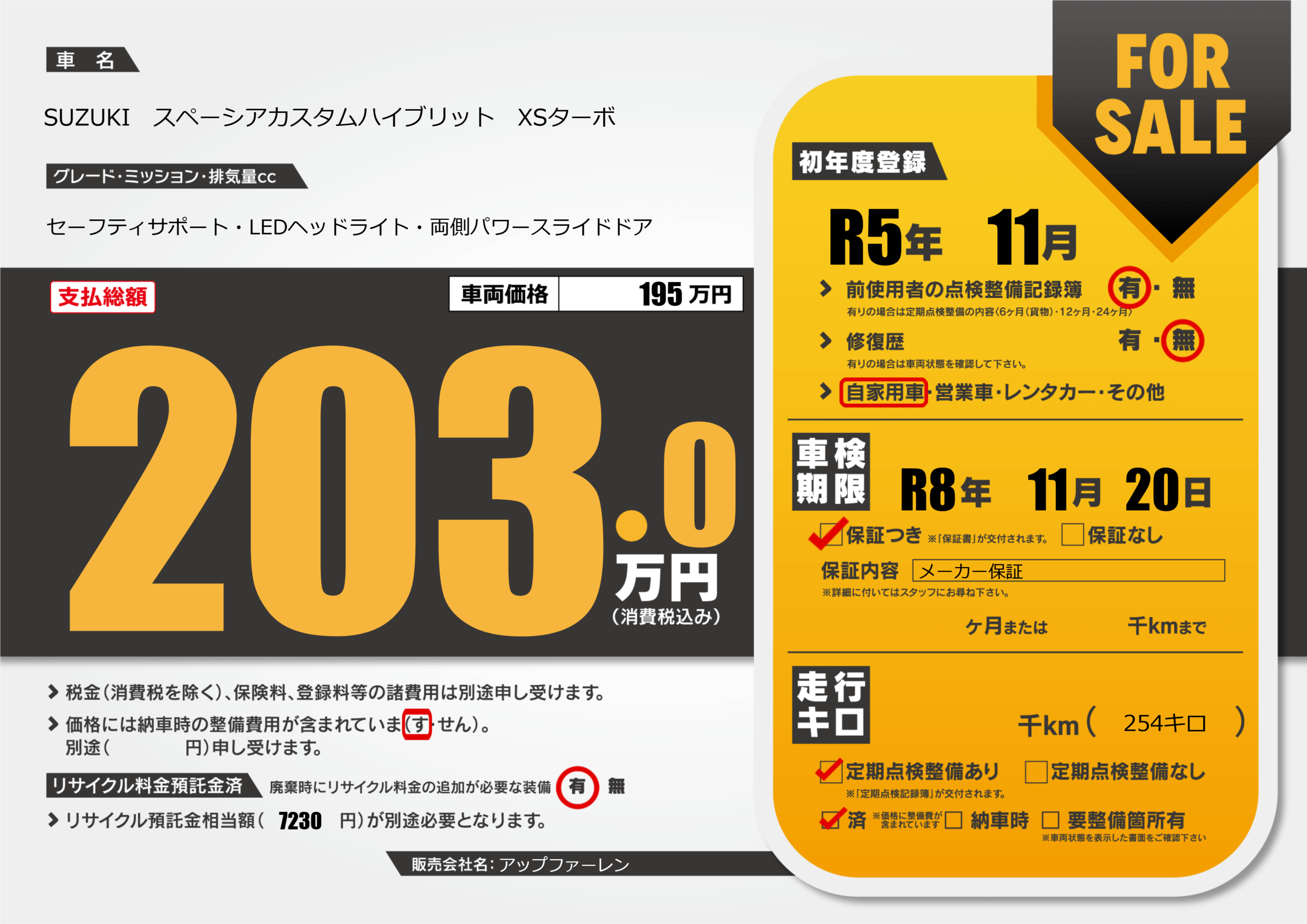 | 定期点検整備 | 定期点検整備あり 定期点検整備済み | ||