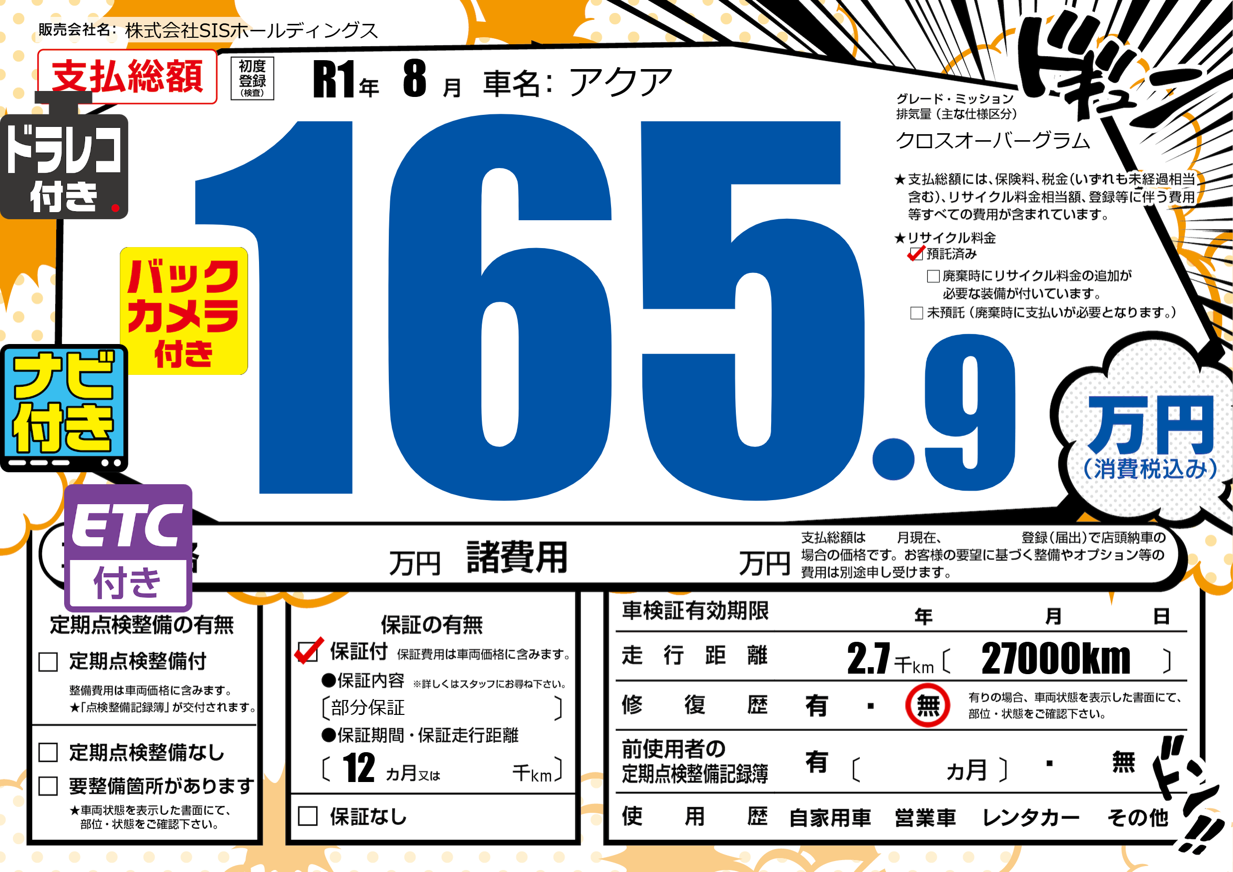 | 走行キロ | 0.2万km | 初年度登録 | R1年8月 |