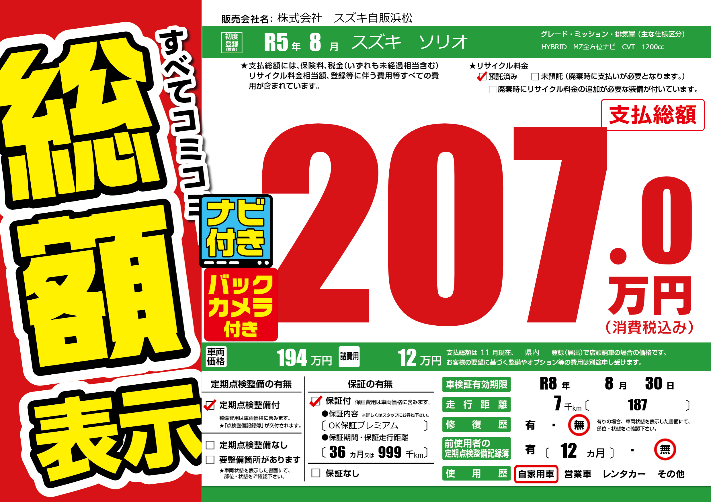 | 車名 | スズキ ソリオ | グレード ミッション 排気量 |