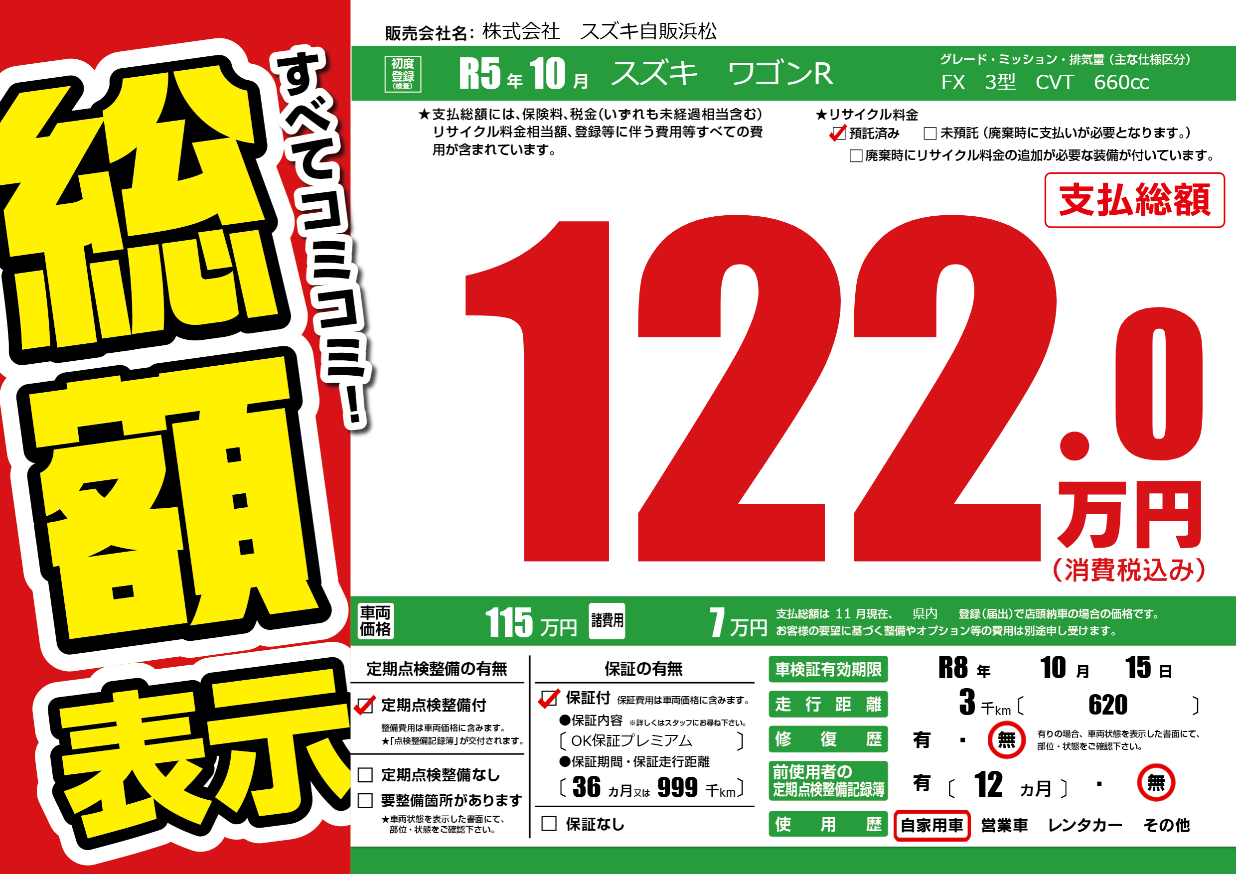 | 車名 | スズキ ワゴンR | グレード ミッション 排気量 |