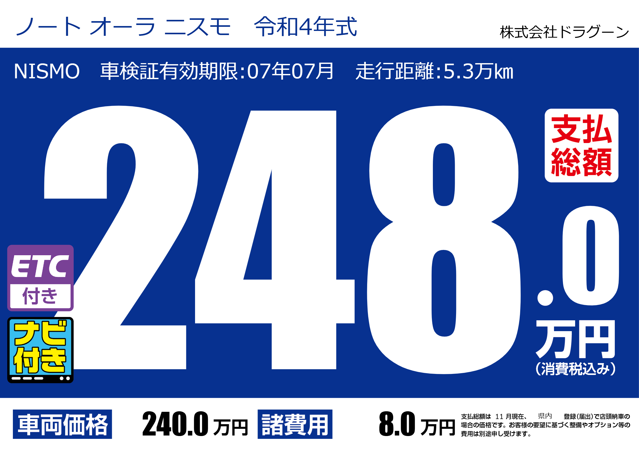 | 車名 | ノート オーラ ニスモ 令和4年式 | グレード ミッション 排気量 |