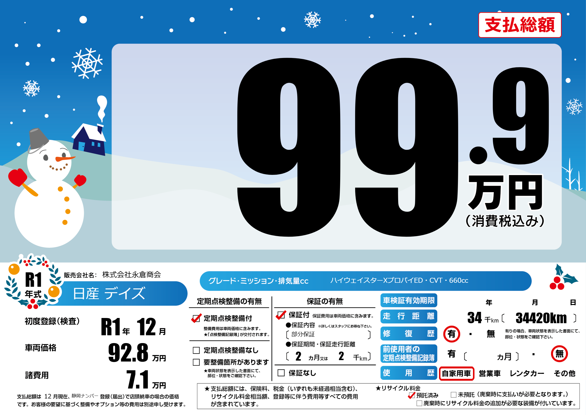 | 初年度登録 | R1年12月 | ||
