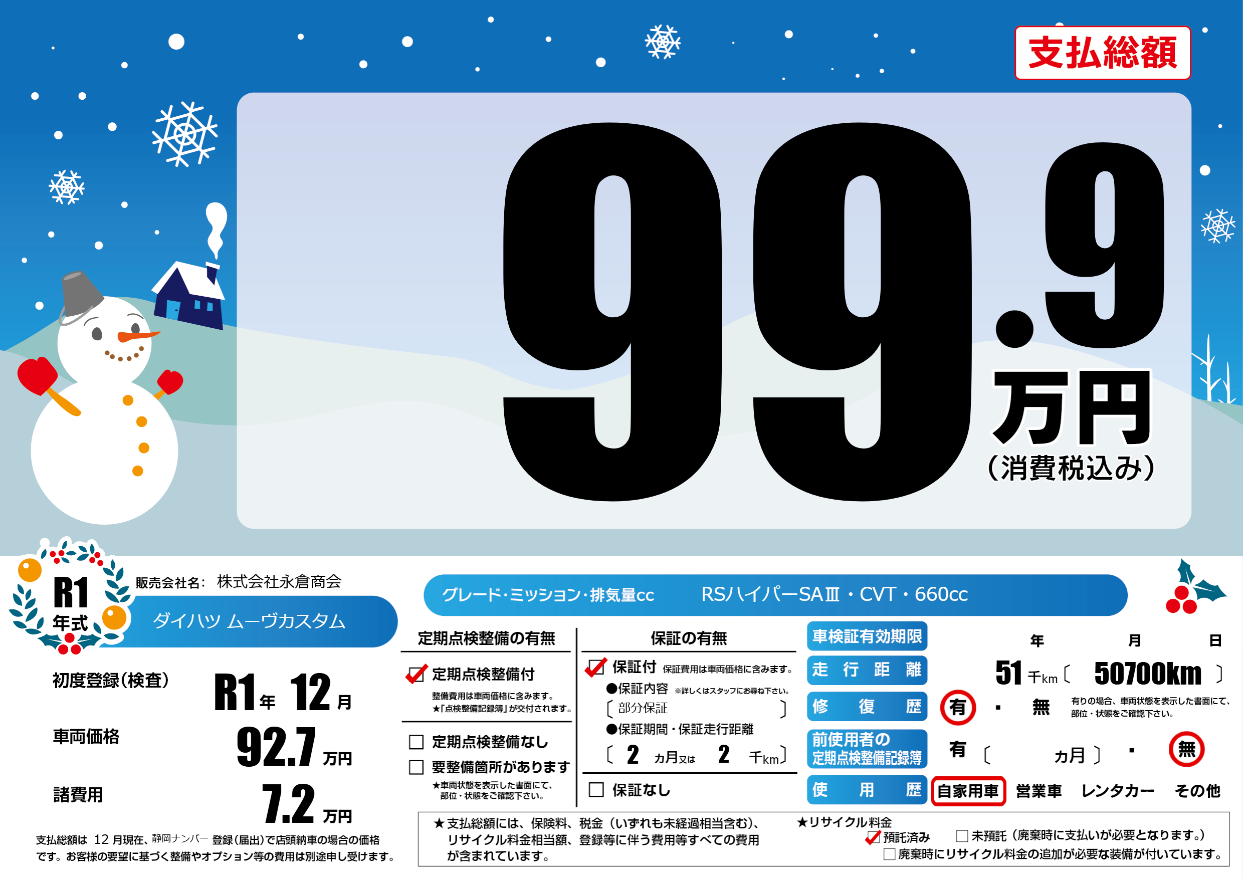 | 定期点検整備 | 定期点検整備あり | ||