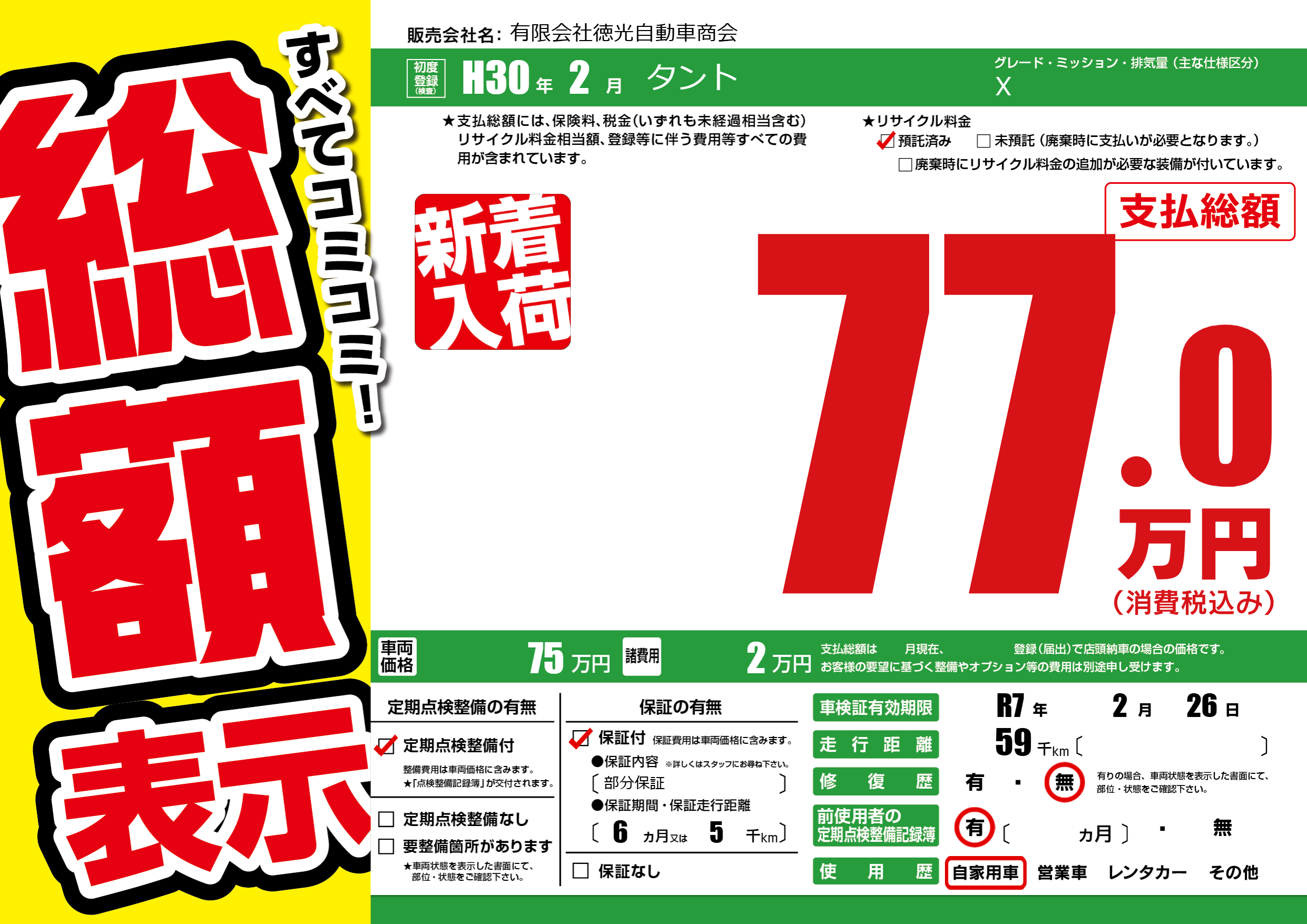 | 走行キロ | 5.9万km | 初年度登録 | H30年2月 |