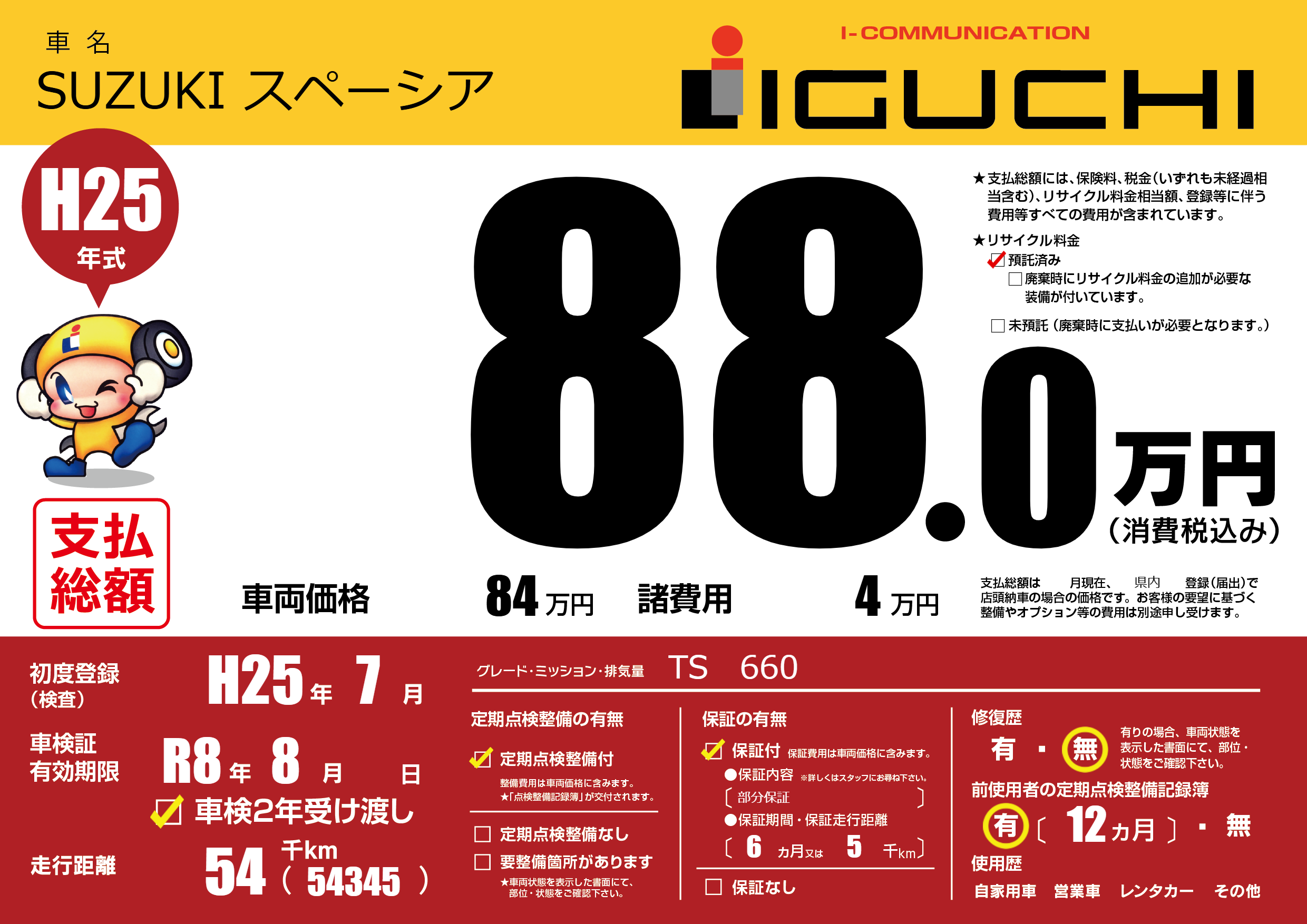 | 車検制限 | R8年 8月 - 日 | ||