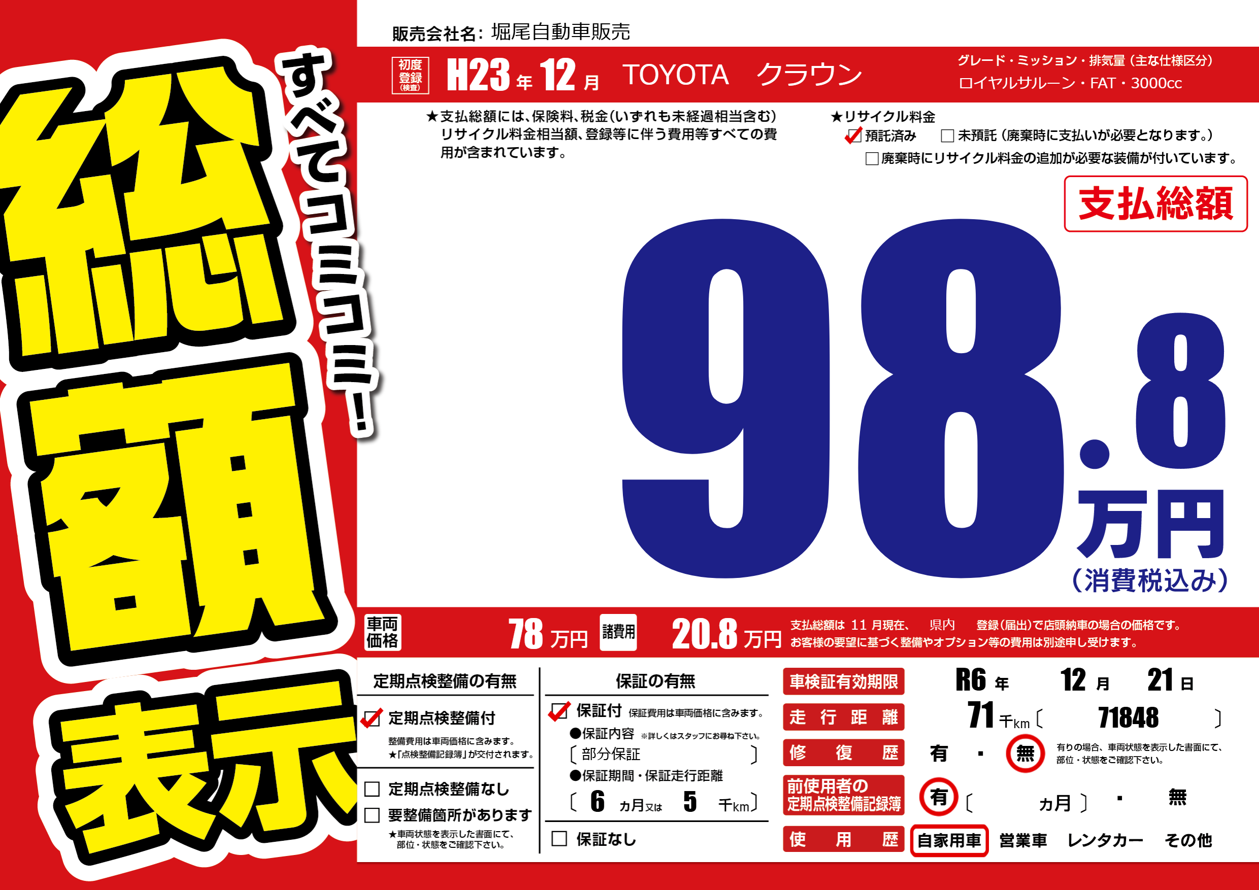 | 車検制限 | R6年 12月 21日 | ||