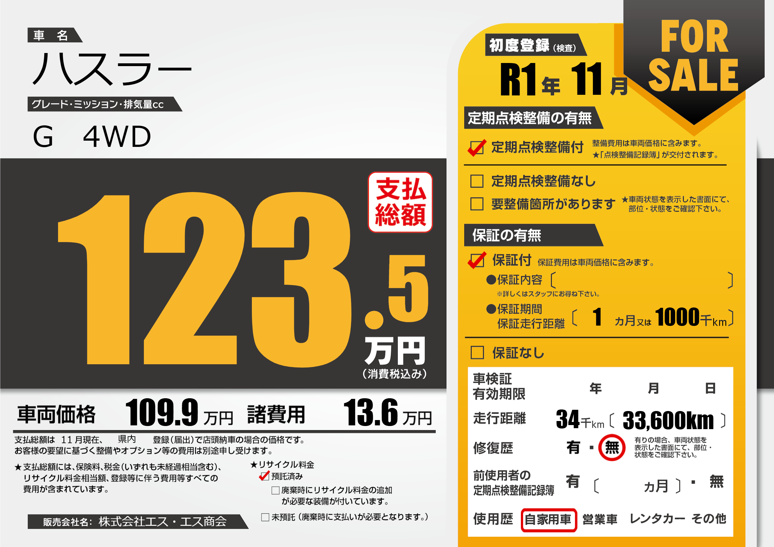 | 車名 | ハスラー | グレード ミッション 排気量 |