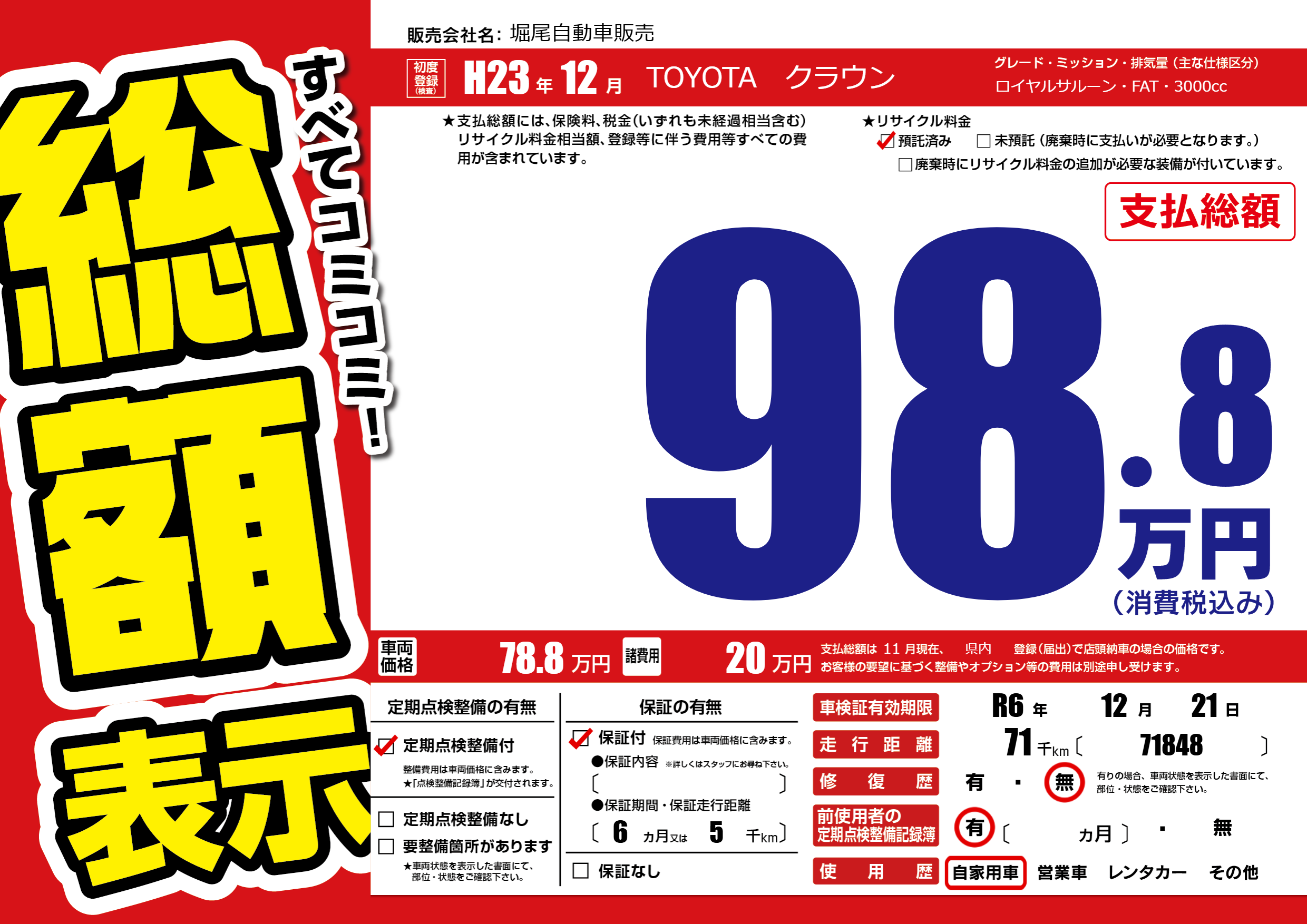 | 車検制限 | R6年 12月 21日 | ||