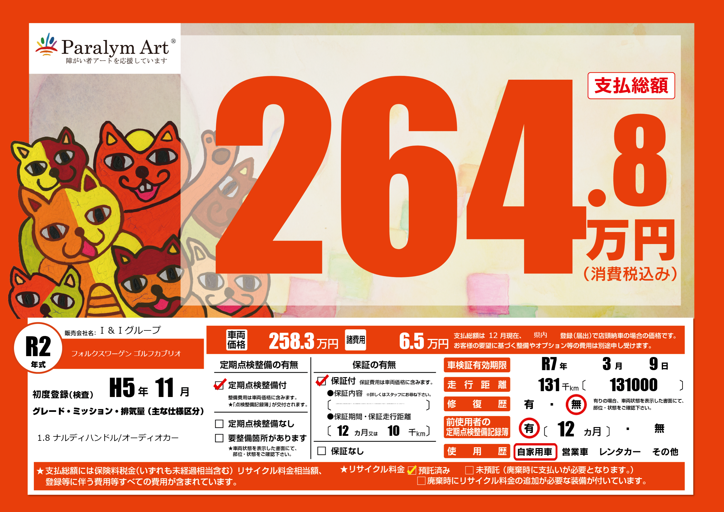 | 車名 | フォルクスワーゲン ゴルフカブリオ | グレード ミッション 排気量 |