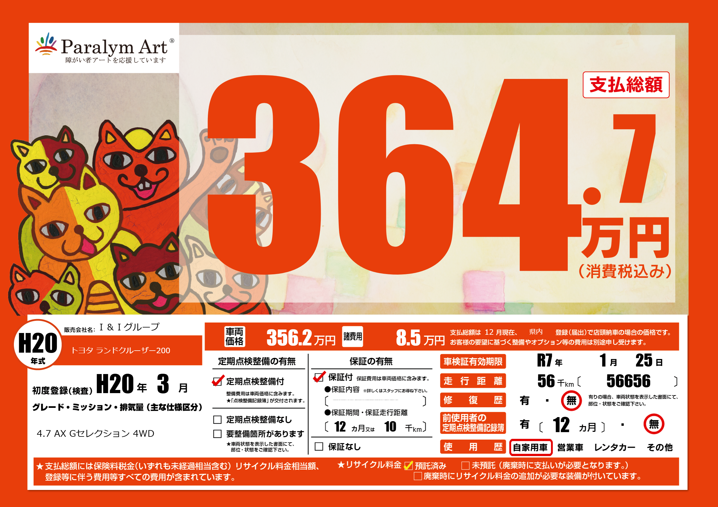 | 車名 | トヨタ ランドクルーザー200 | グレード ミッション 排気量 |