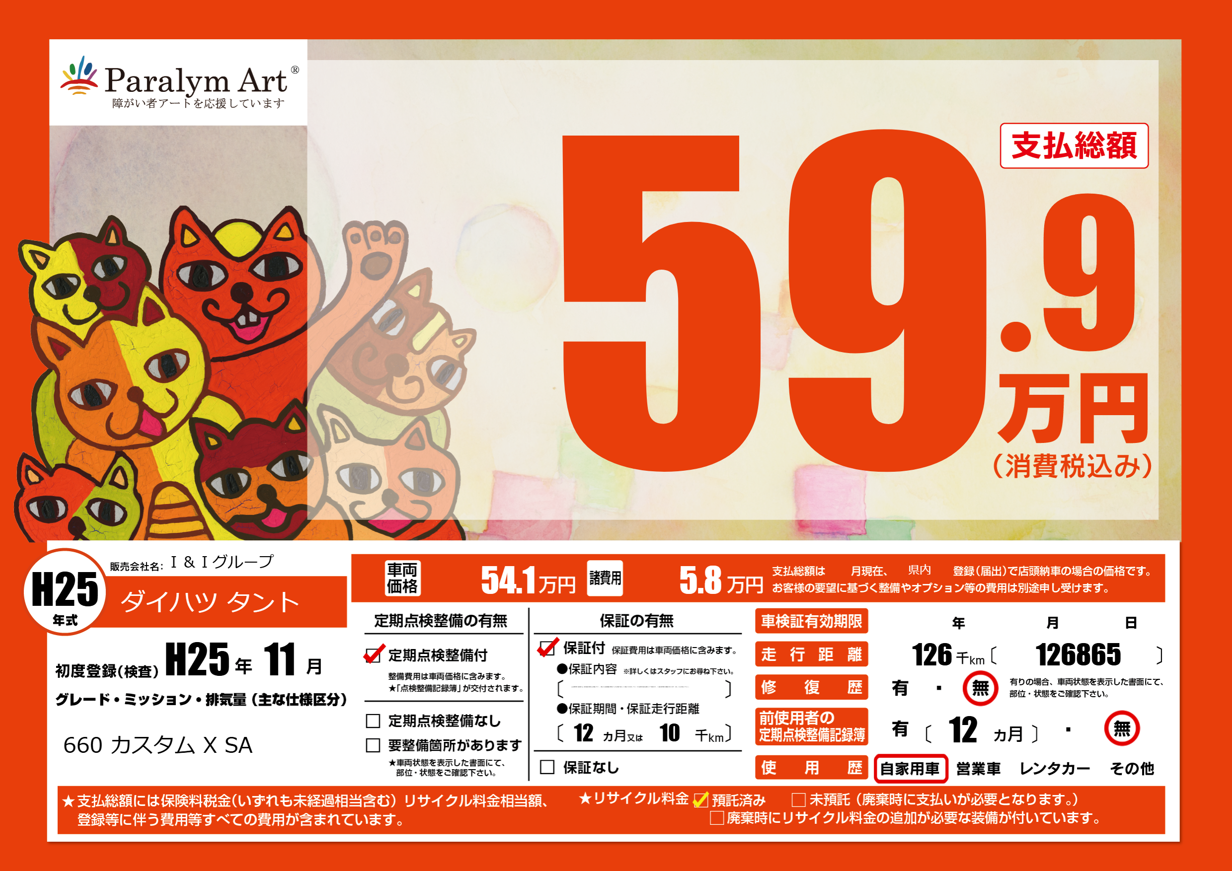 | 走行キロ | 12.6万km | 初年度登録 | H25年11月 |