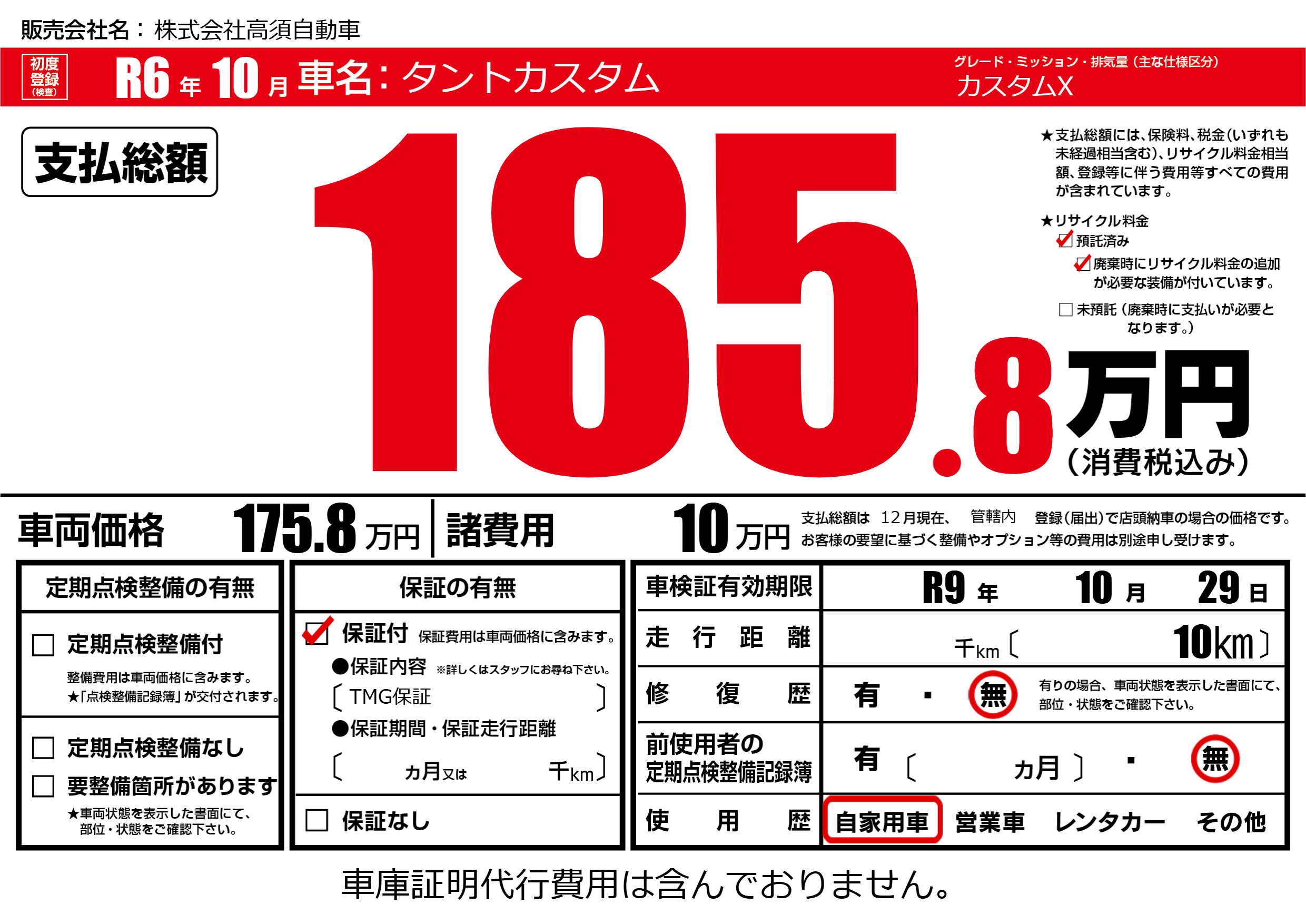 保証付き 保証内容(TMG保証) ---ヶ月または()千kmまで |