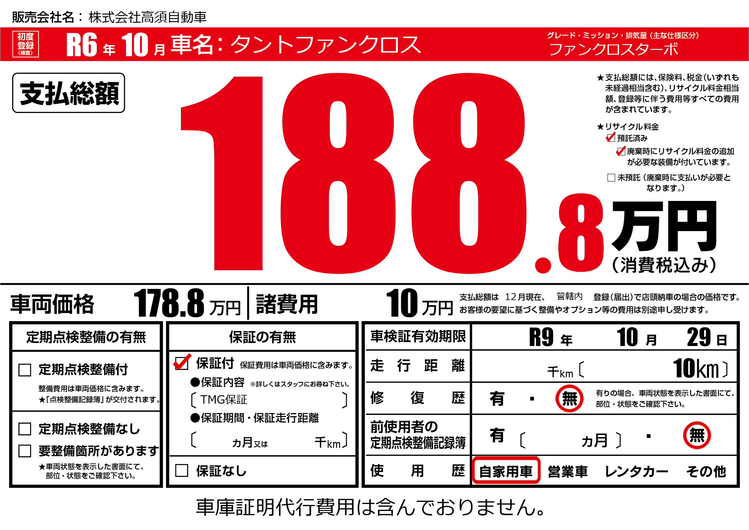 保証付き 保証内容(TMG保証) ---ヶ月または()千kmまで |