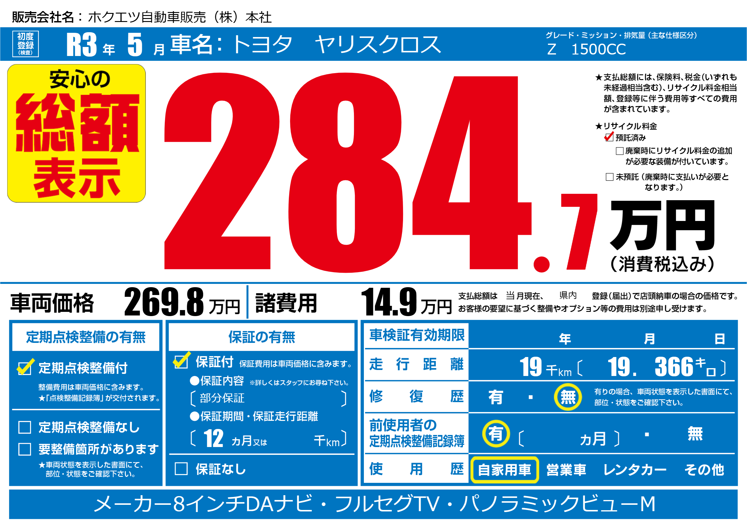 | 定期点検整備 | 定期点検整備あり | ||