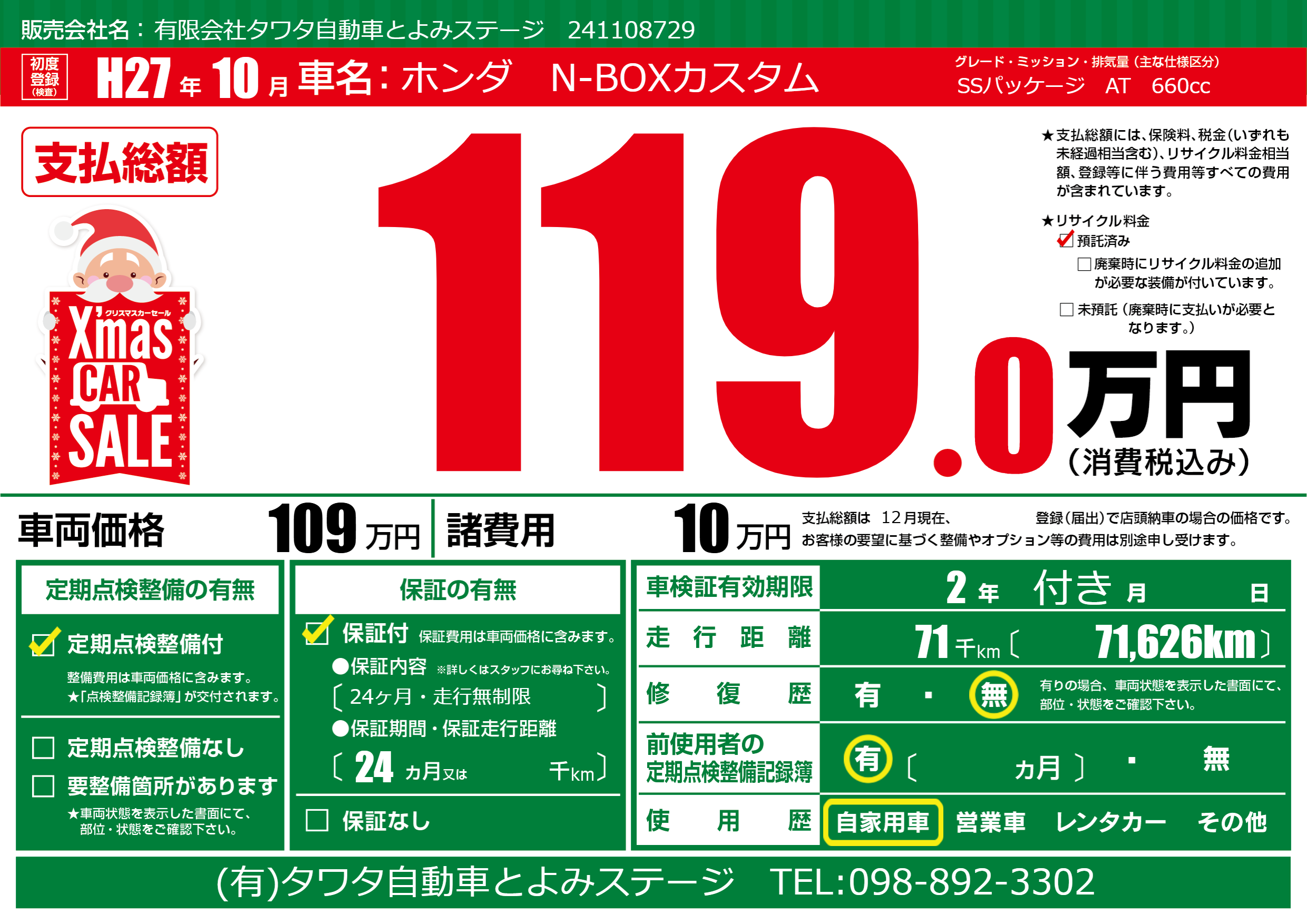 | 定期点検整備 | 定期点検整備あり | ||