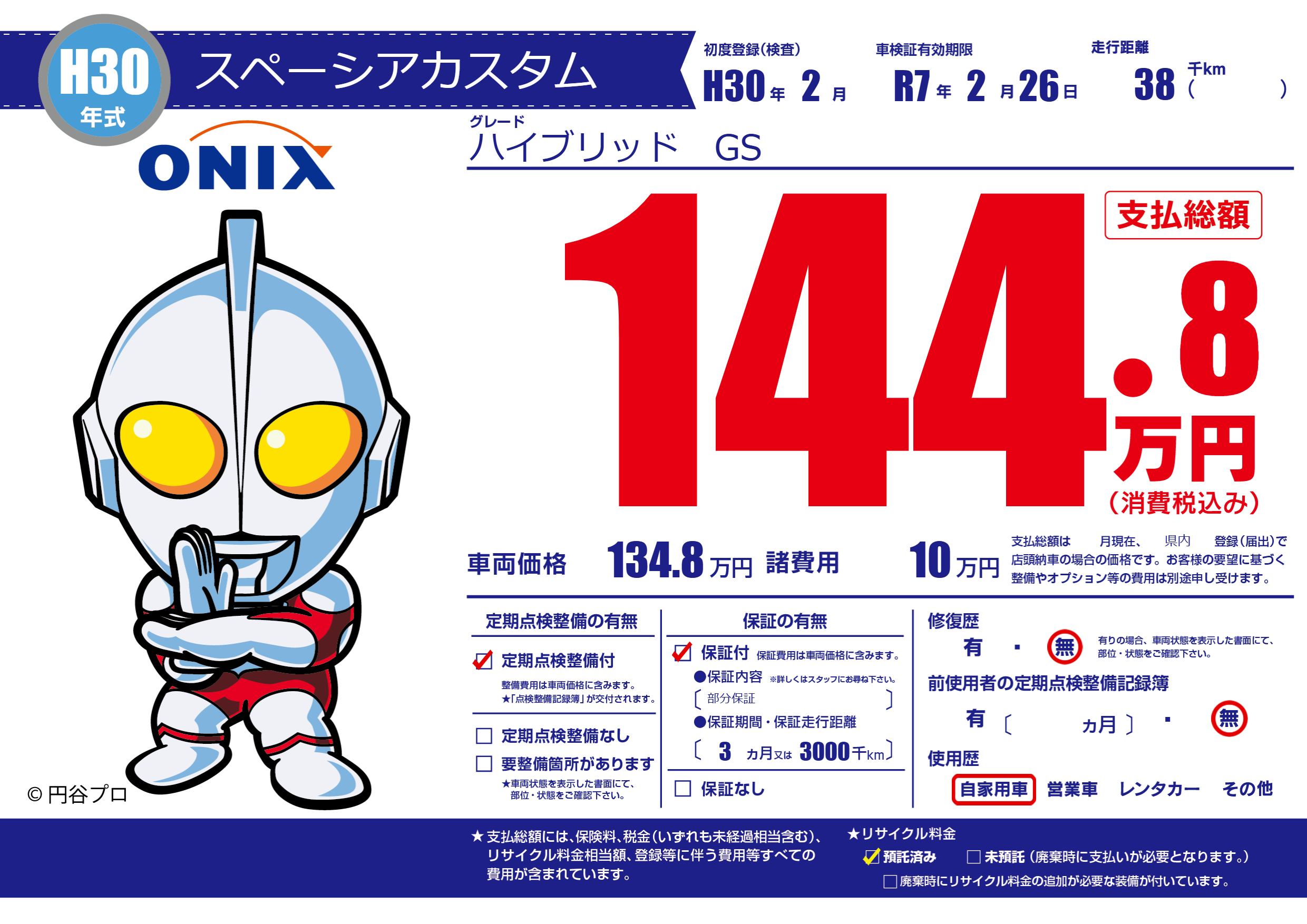 | 車名 | スペーシアカスタム | グレード ミッション 排気量 |