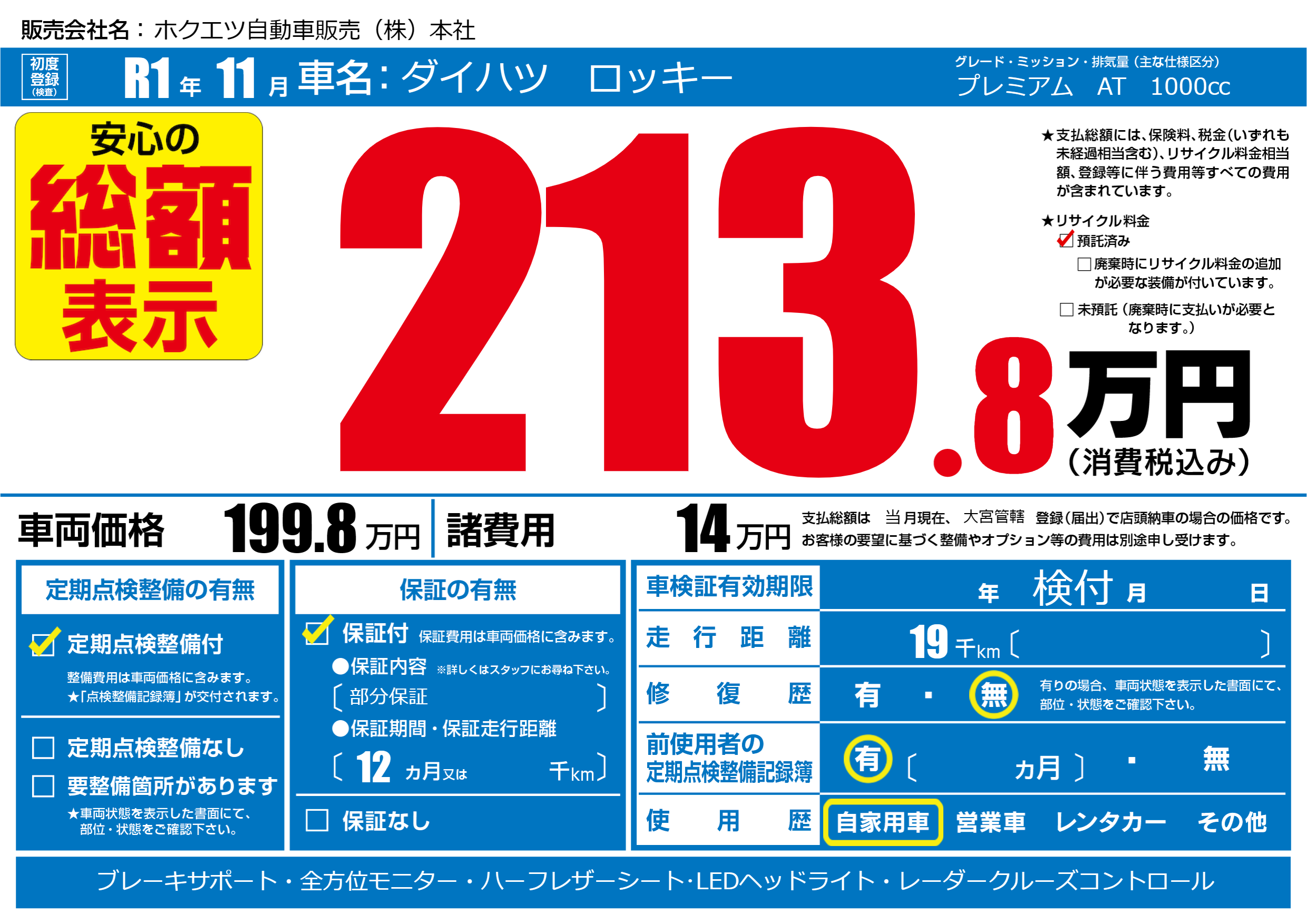 保証付き 保証内容(部分保証) 12ヶ月または()千kmまで |