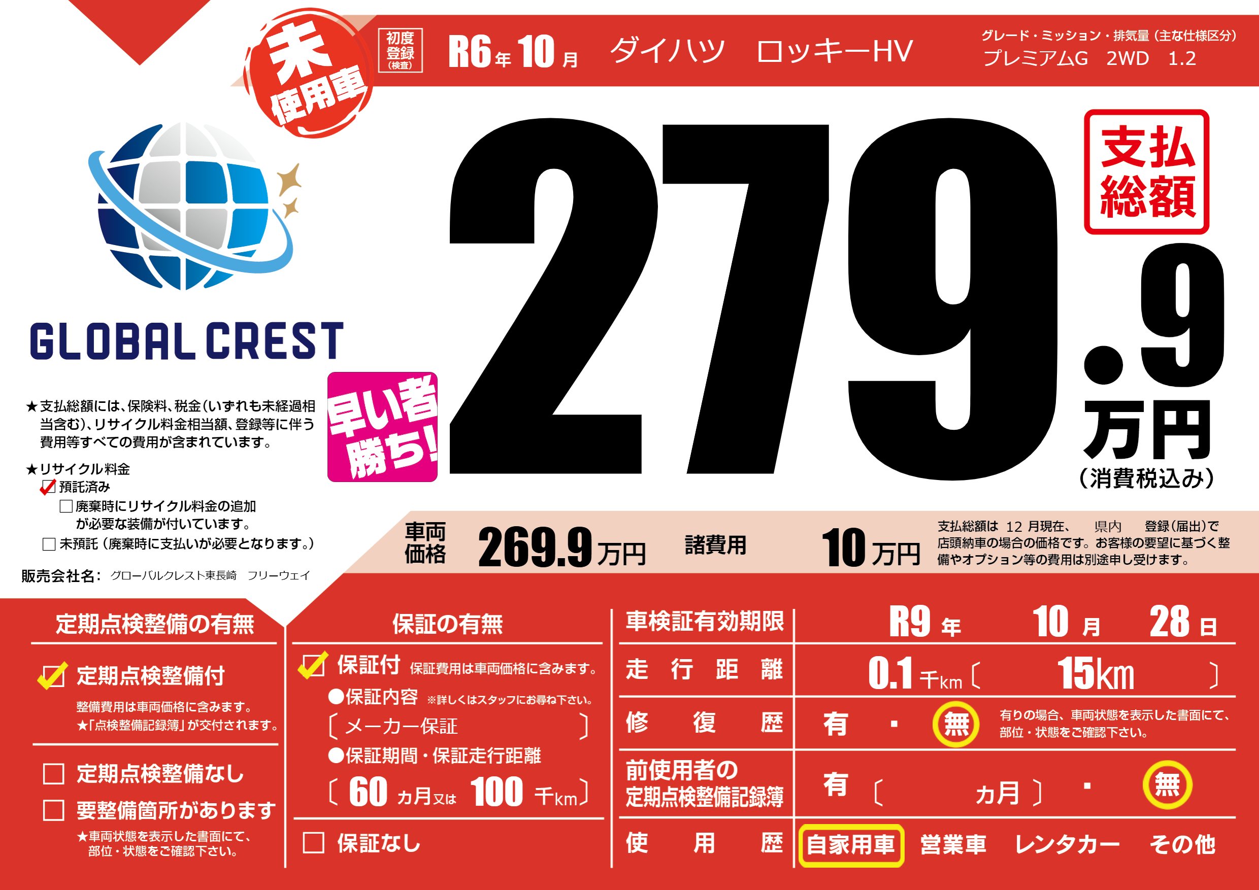 | 走行キロ | - | 初年度登録 | R6年10月 |