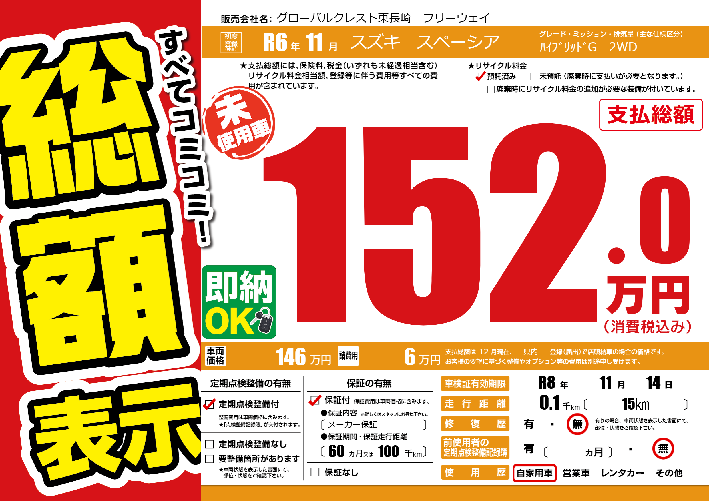 | 走行キロ | - | 初年度登録 | R6年11月 |