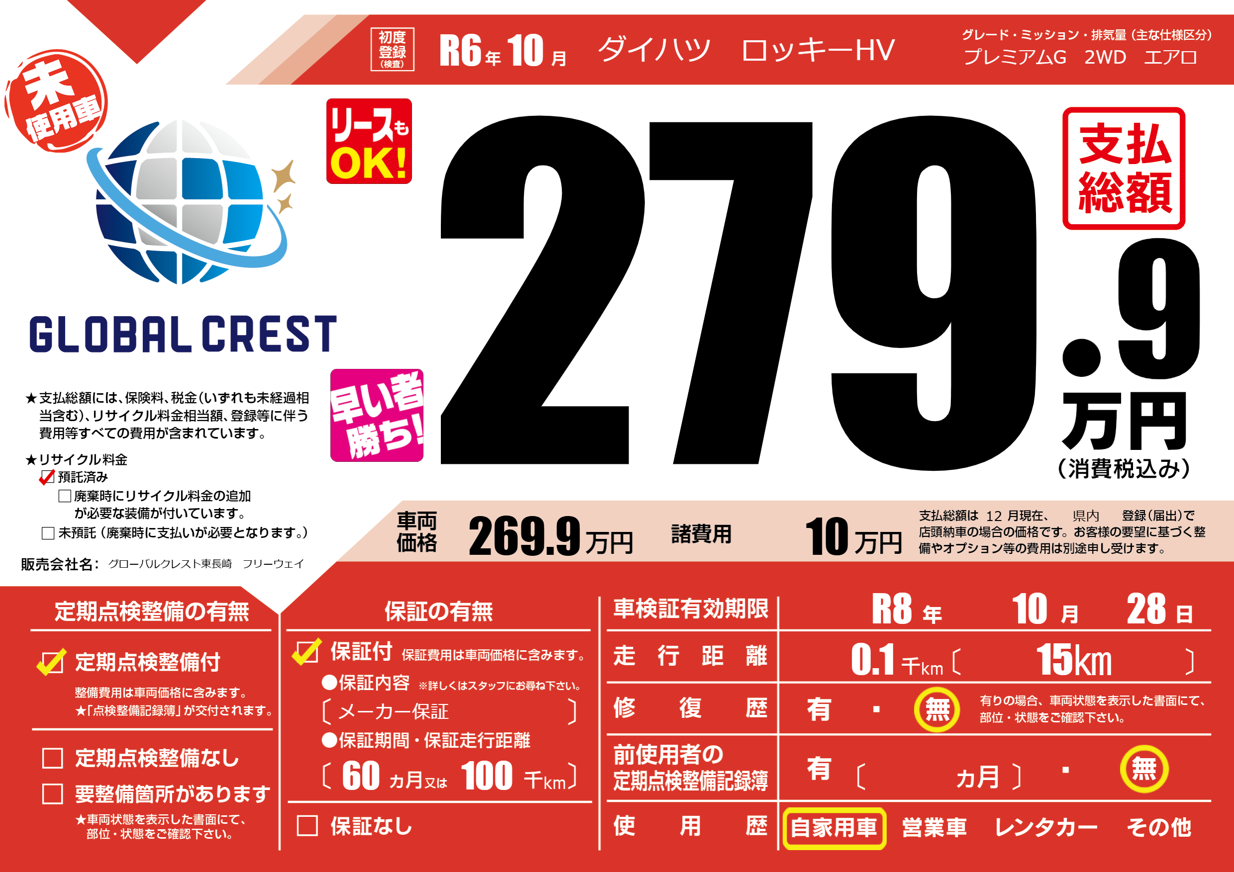 | 走行キロ | - | 初年度登録 | R6年10月 |
