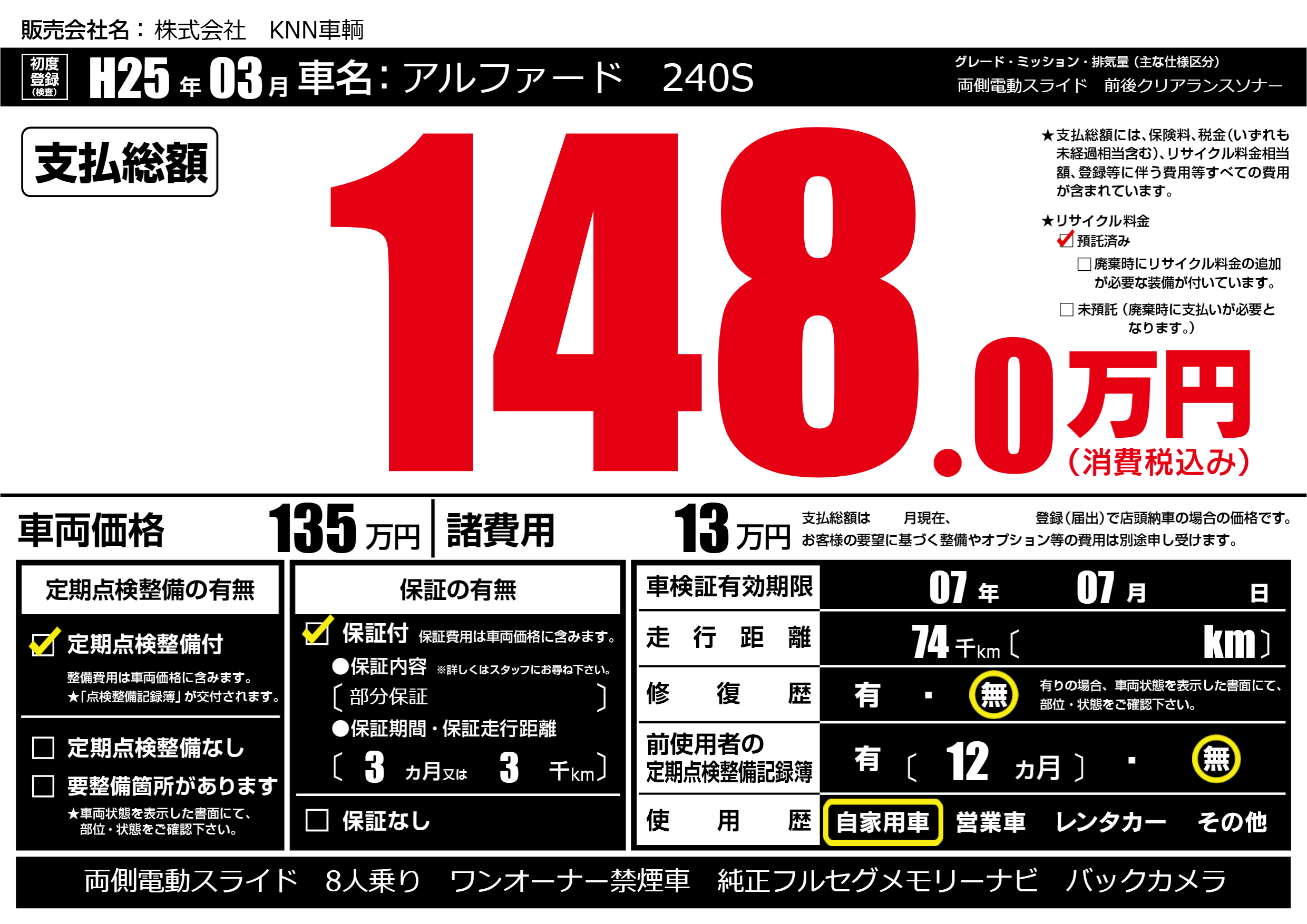 | 走行キロ | 7.4万km | 初年度登録 | H25年03月 |