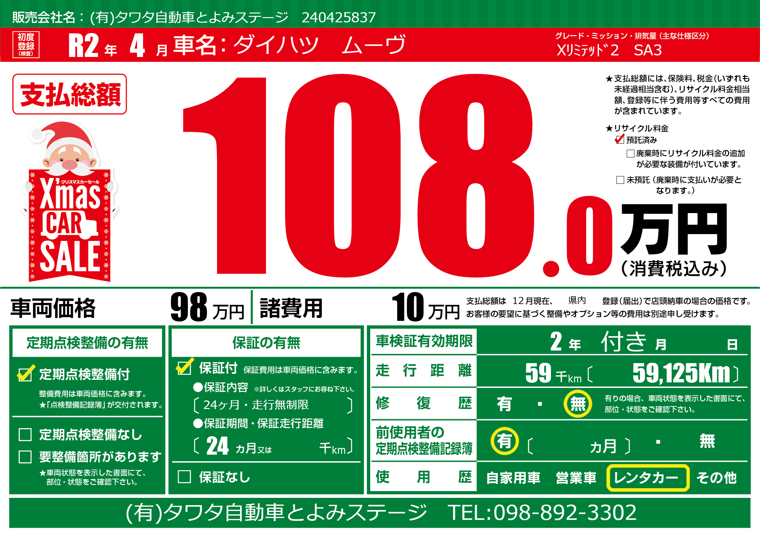 | 走行キロ | 5.9万km | 初年度登録 | R2年4月 |