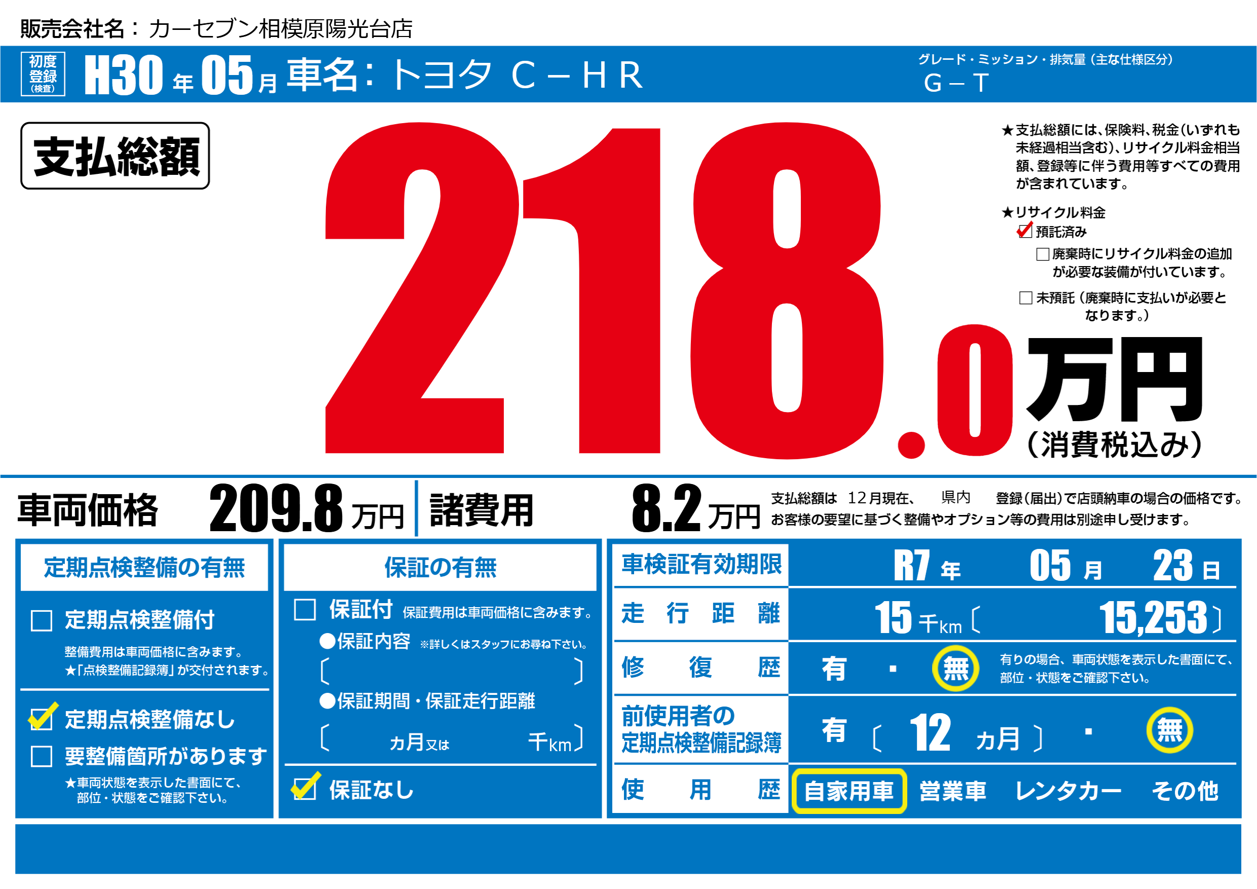 | 車検制限 | R7年 05月 23日 | ||