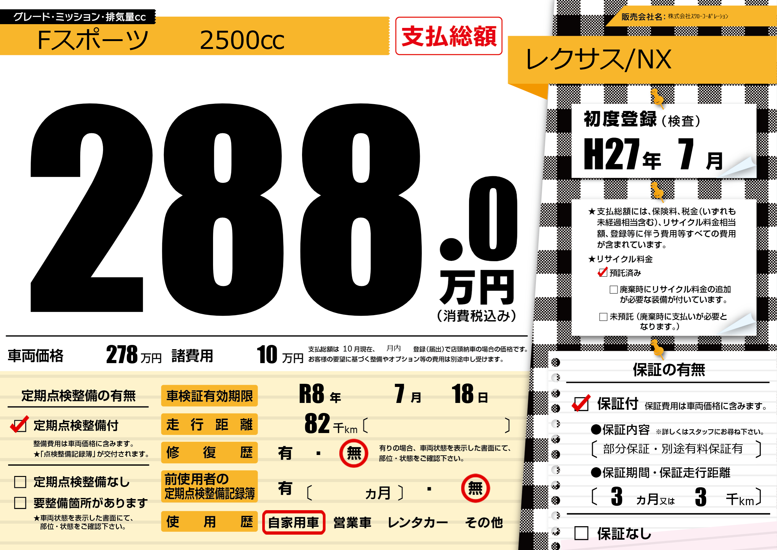 なし | 車検制限 | R8年7月18月 |