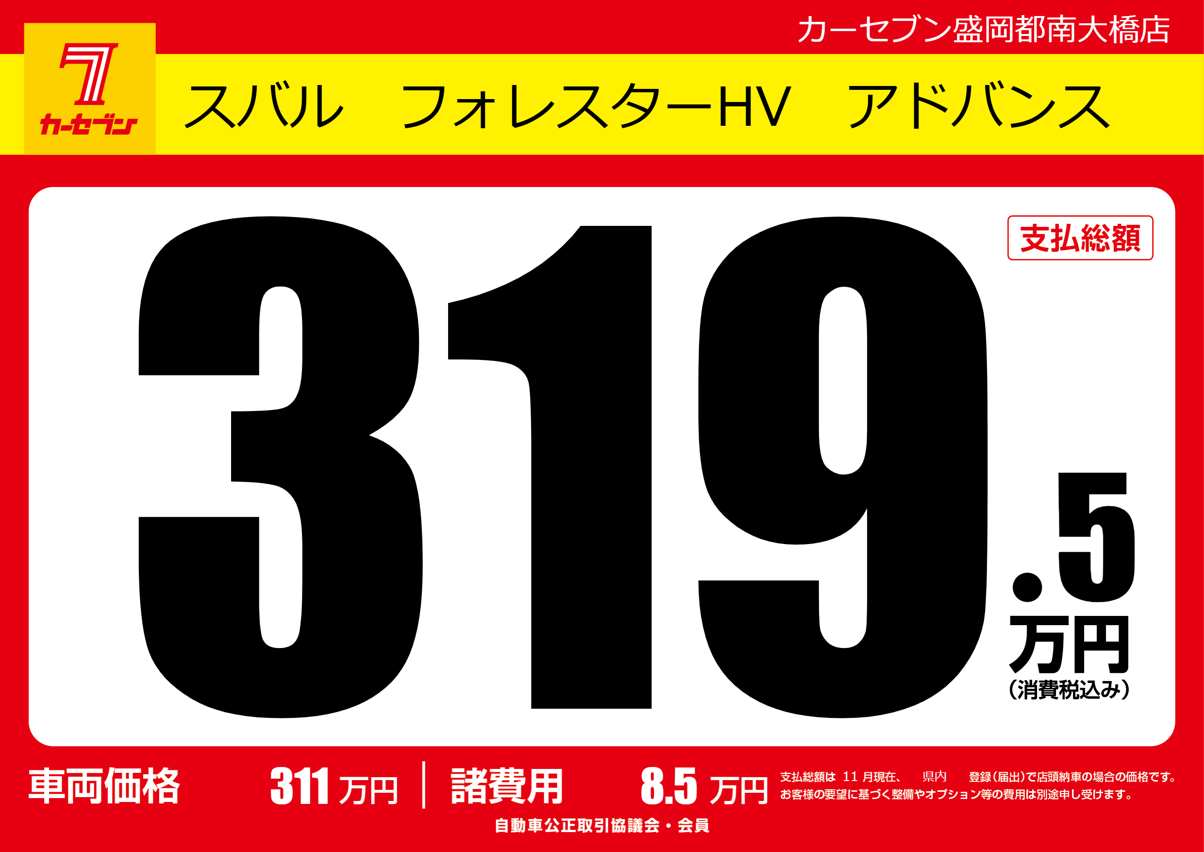 | 車名 | スバル フォレスターHV アドバンス | グレード ミッション 排気量 |