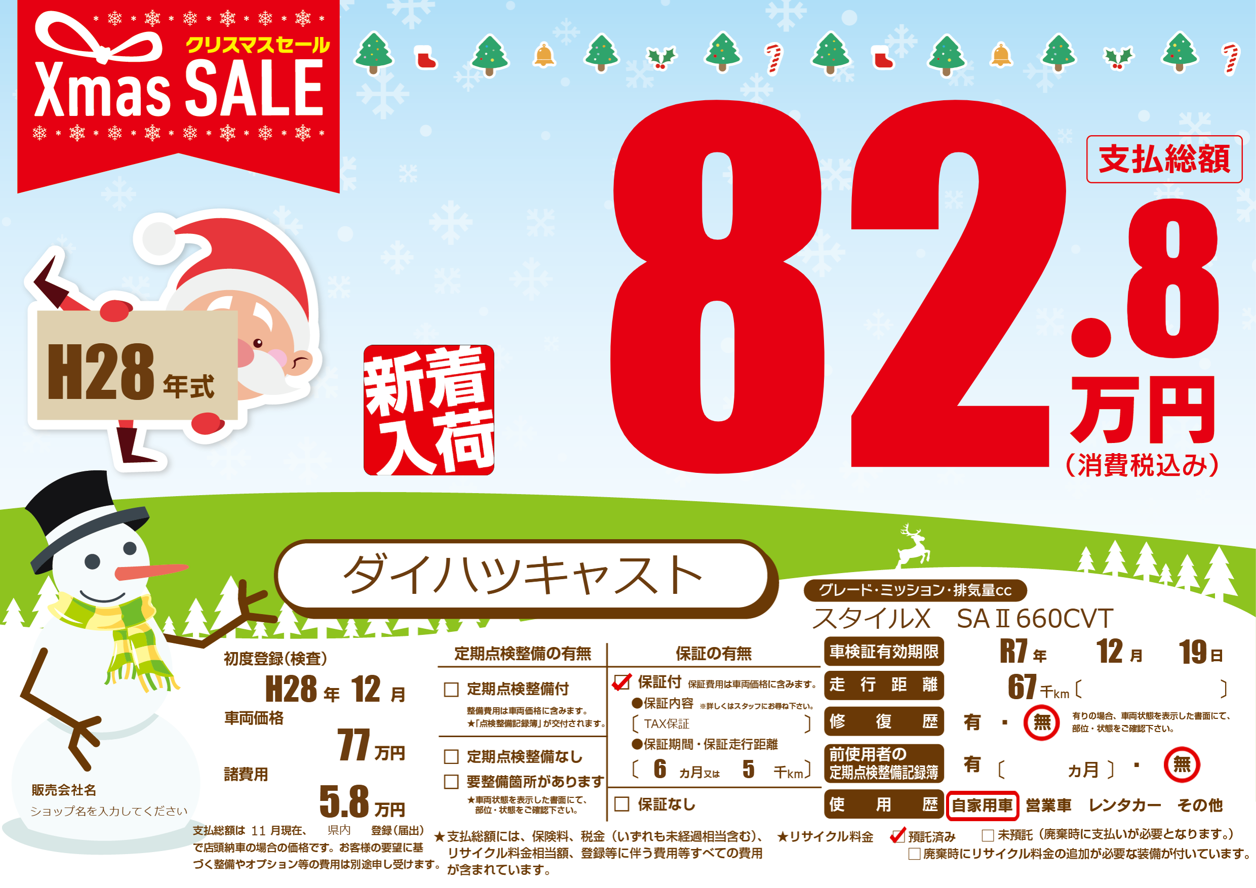 | 車名 | ダイハツキャスト | グレード ミッション 排気量 |