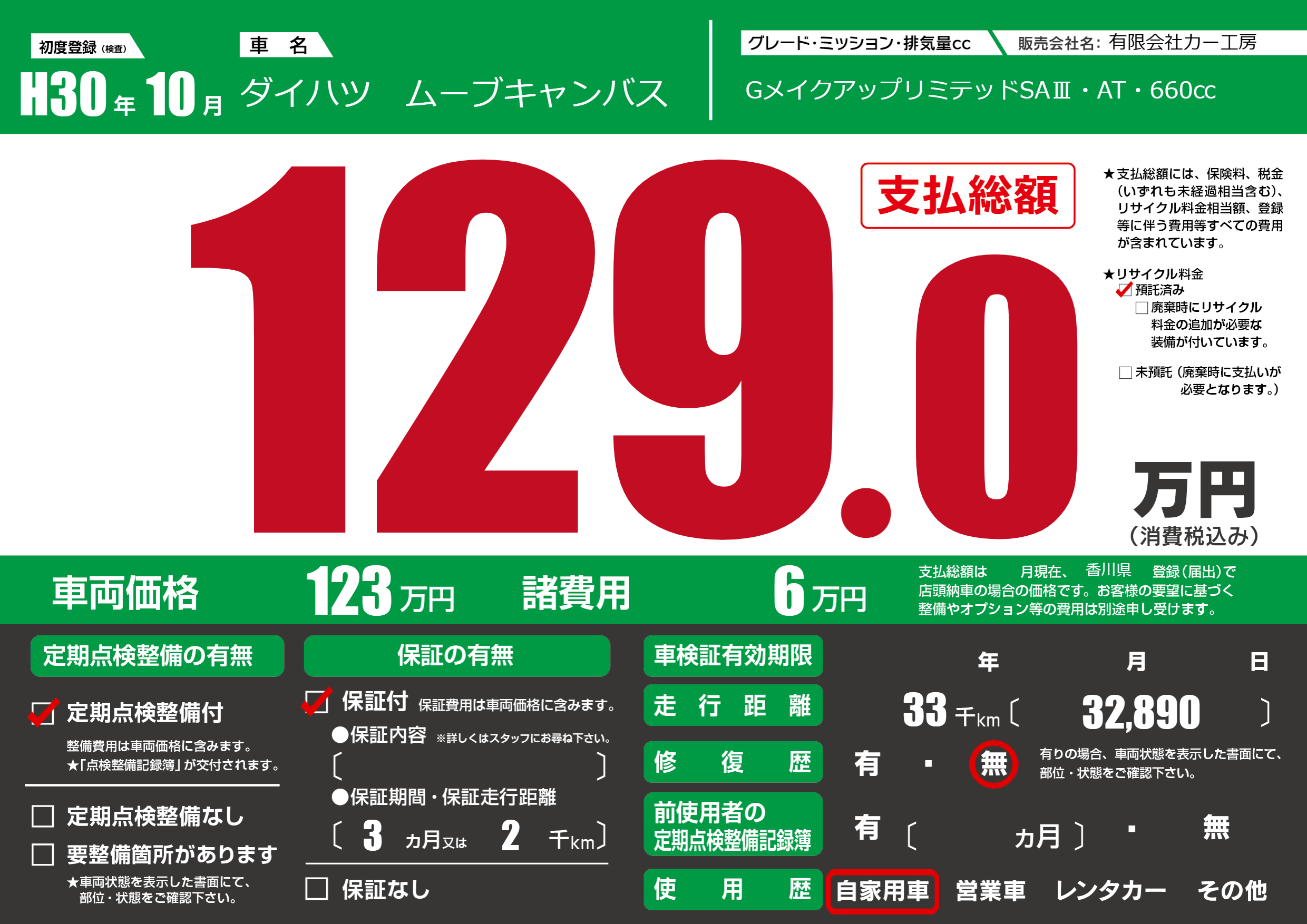 | 走行キロ | 3.3万km | 初年度登録 | H30年10月 |