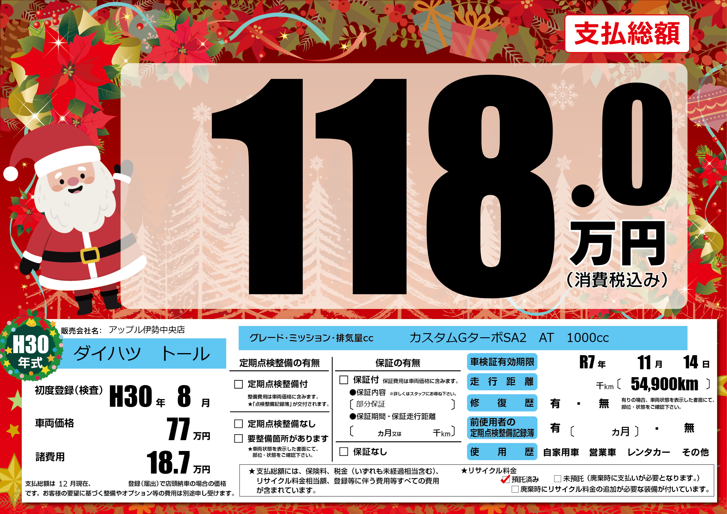 なし | 車検制限 | R7年11月14月 |