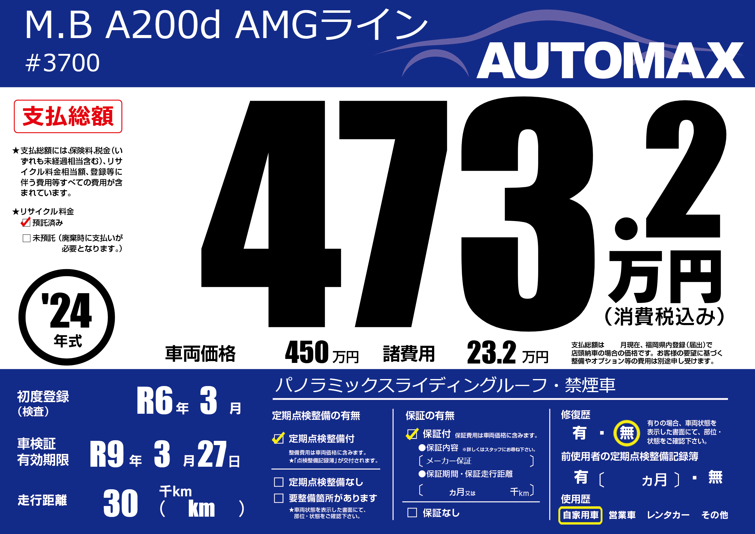 | 車名 | M.B A200d AMGライン | グレード ミッション 排気量 |