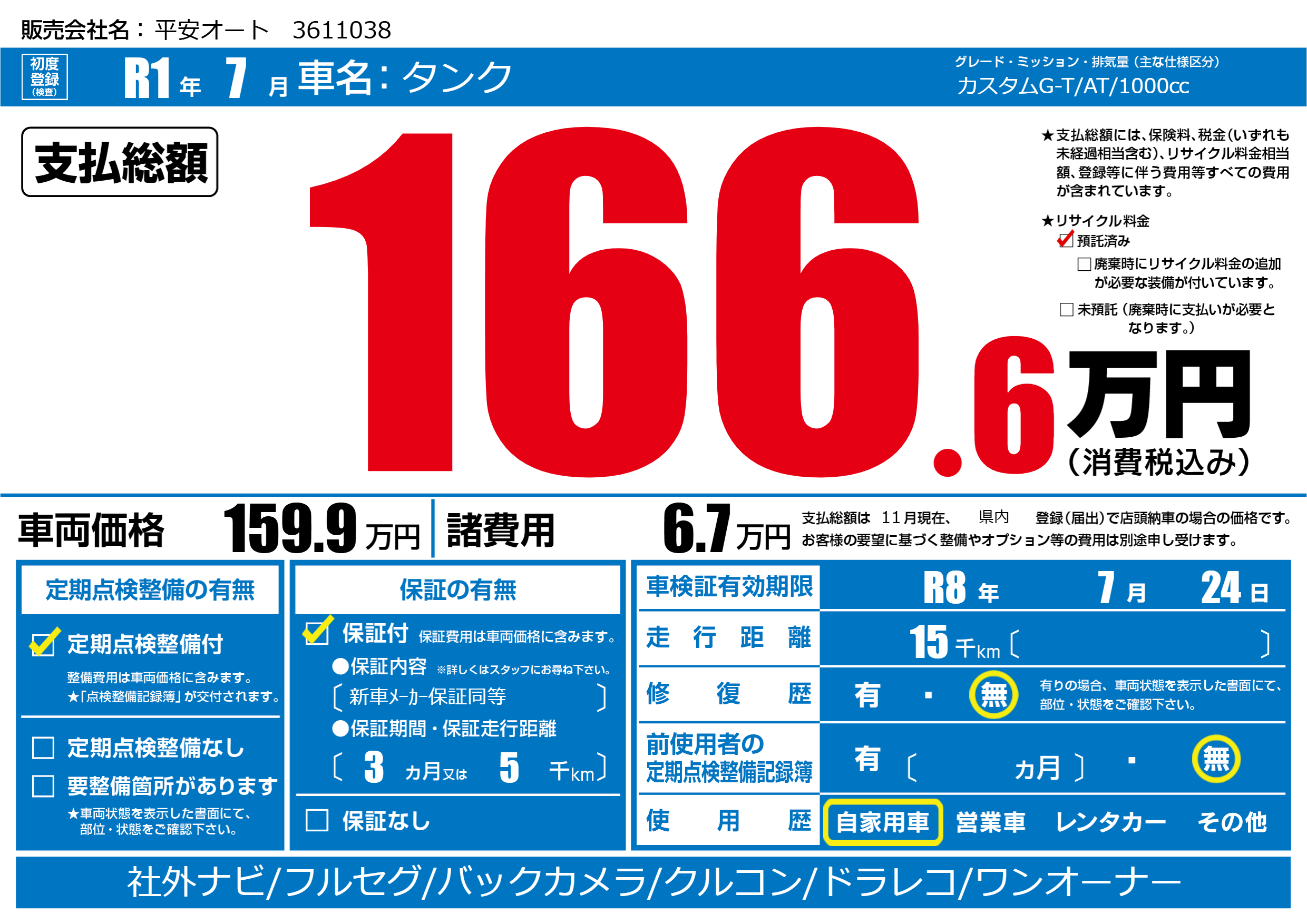 なし | 車検制限 | R8年7月24月 |