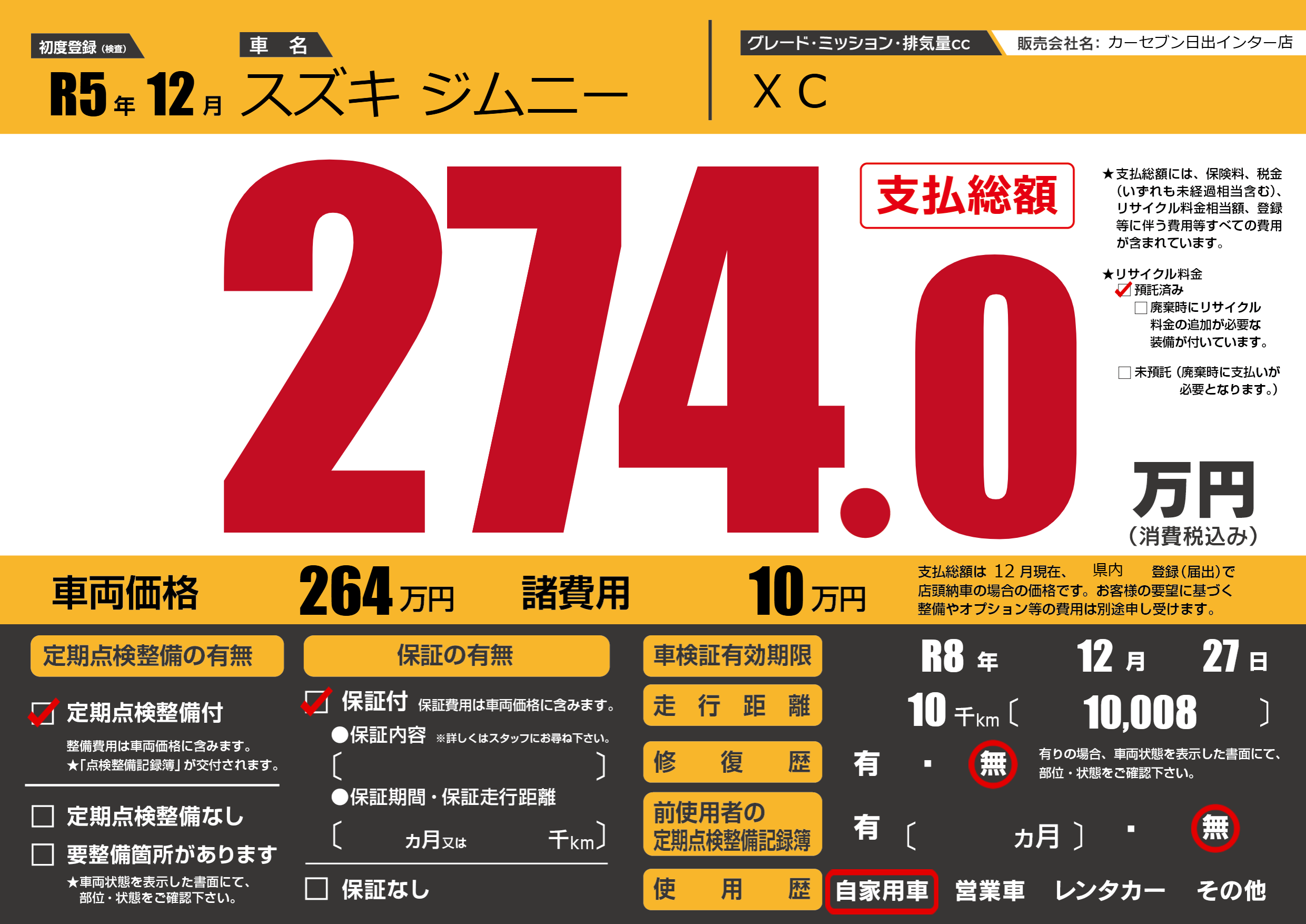 | 走行キロ | 1万km | 初年度登録 | R5年12月 |