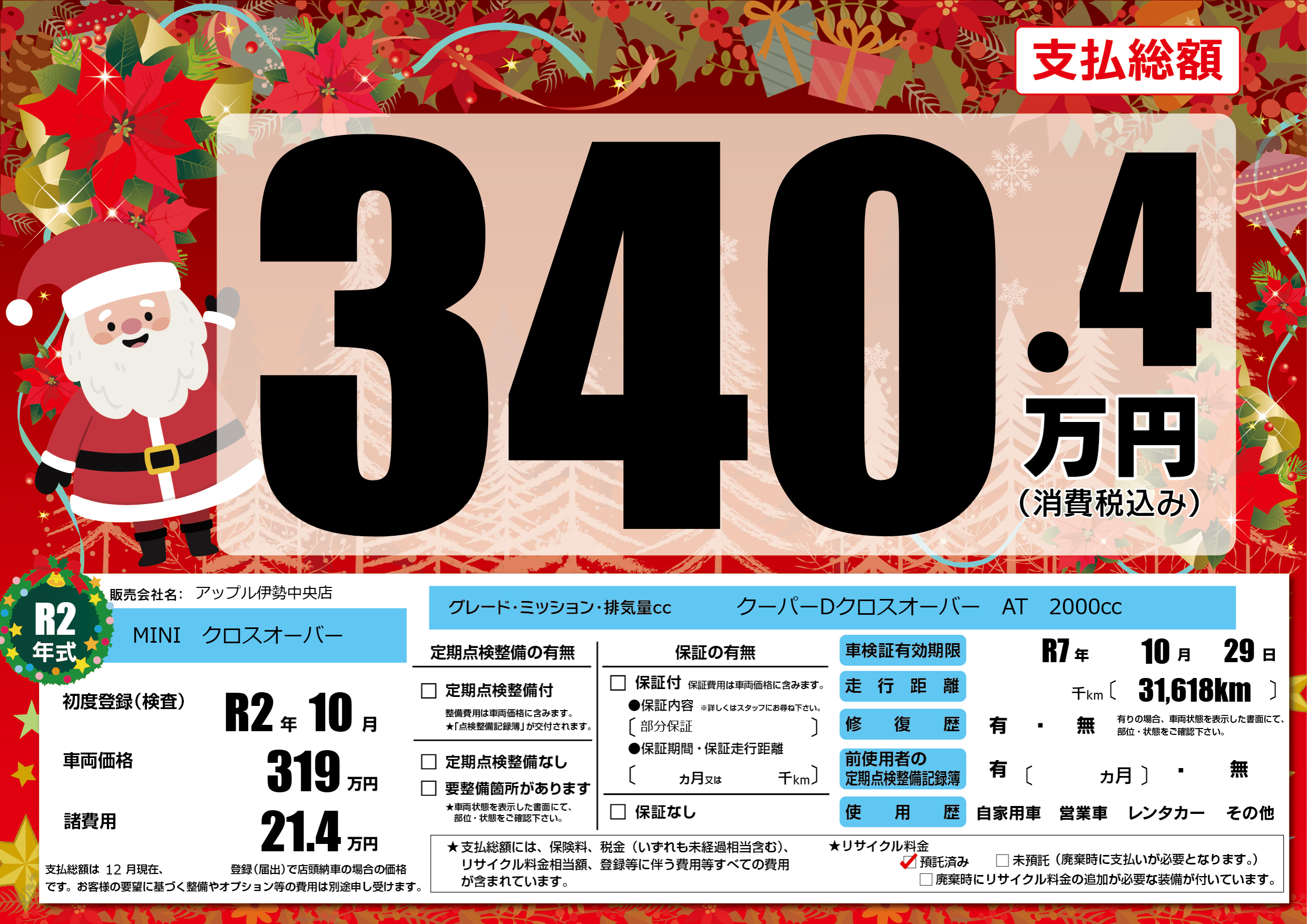 なし | 車検制限 | R7年10月29月 |
