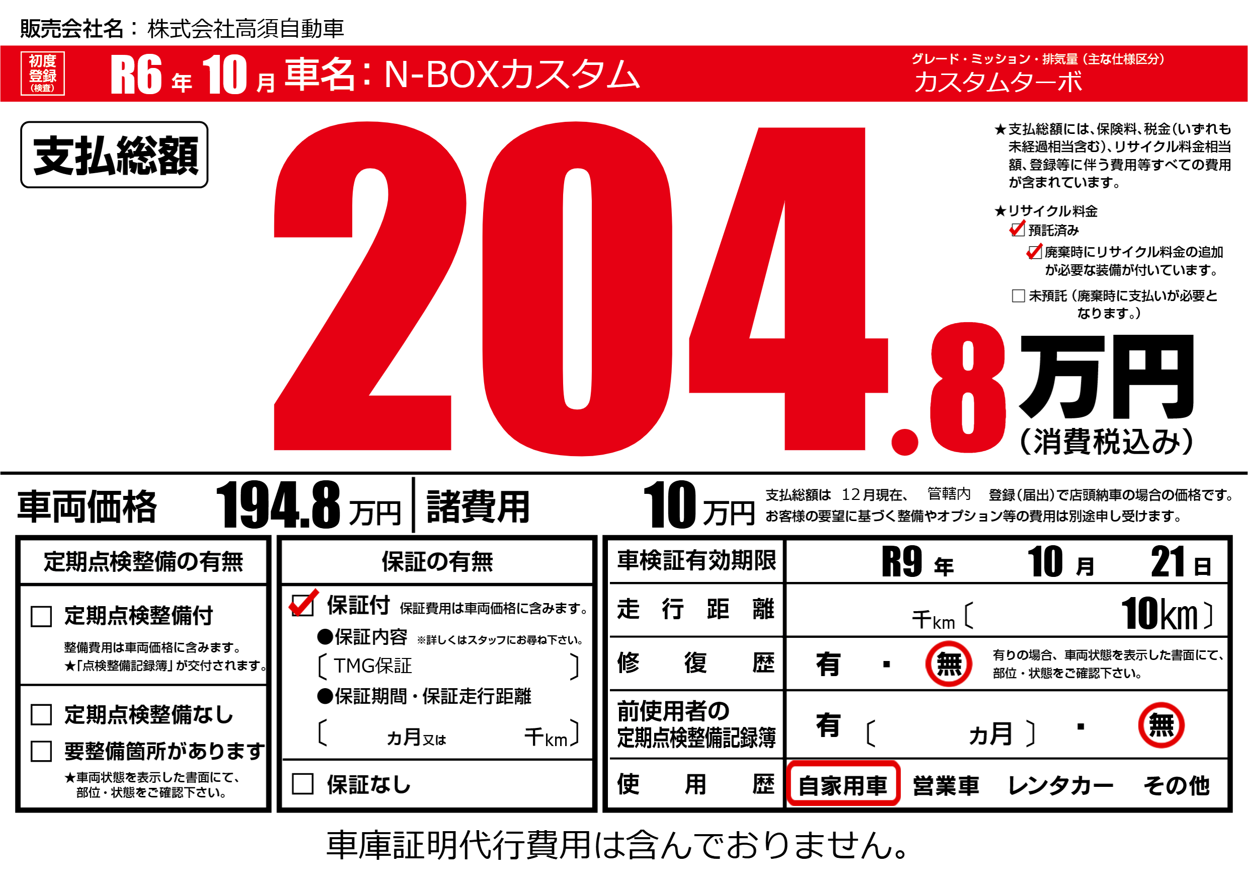 保証付き 保証内容(TMG保証) ---ヶ月または()千kmまで |
