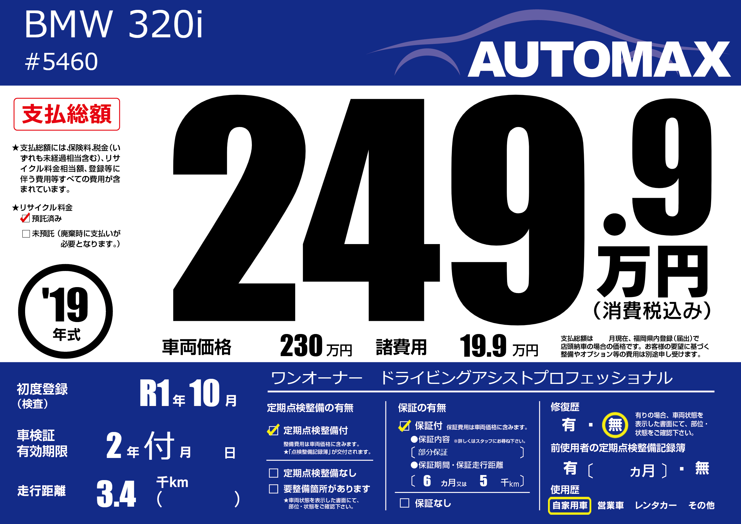 | 車名 | BMW 320i | グレード ミッション 排気量 |