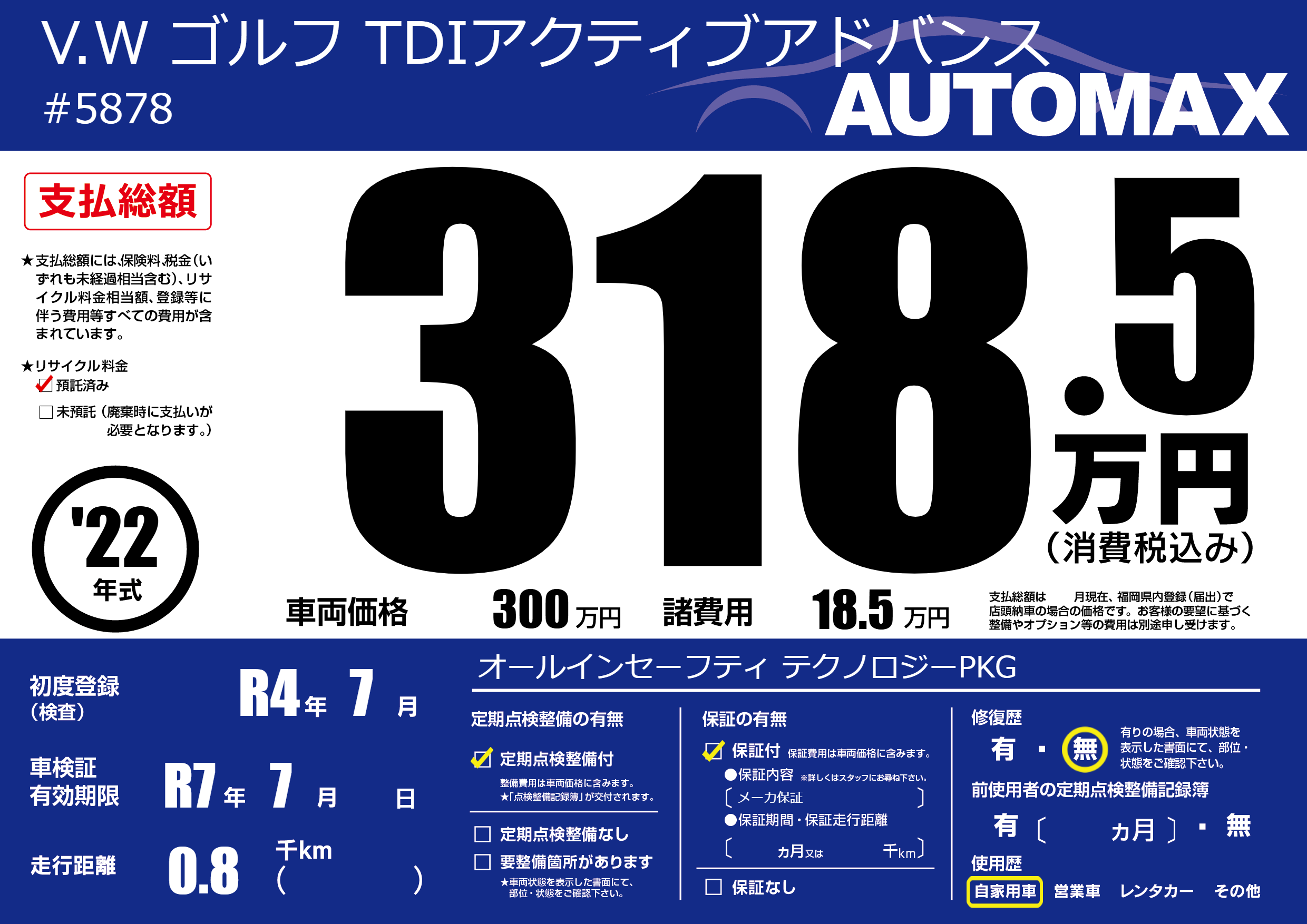 | 車検制限 | R7年 7月 - 日 | ||