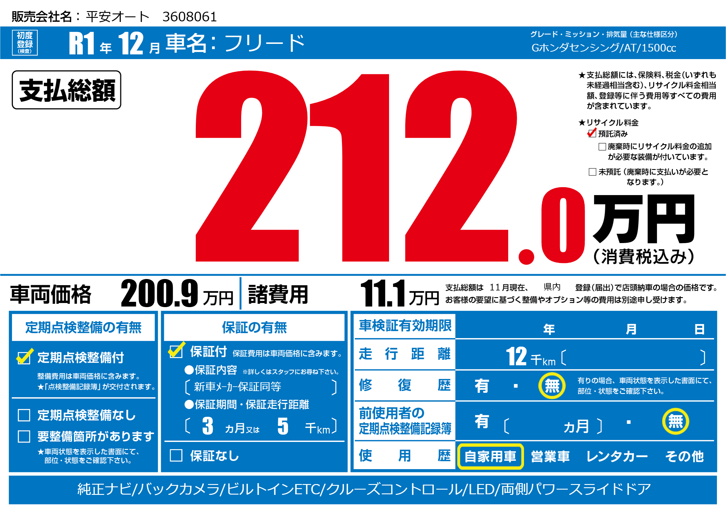 | 初年度登録 | R1年12月 | ||
