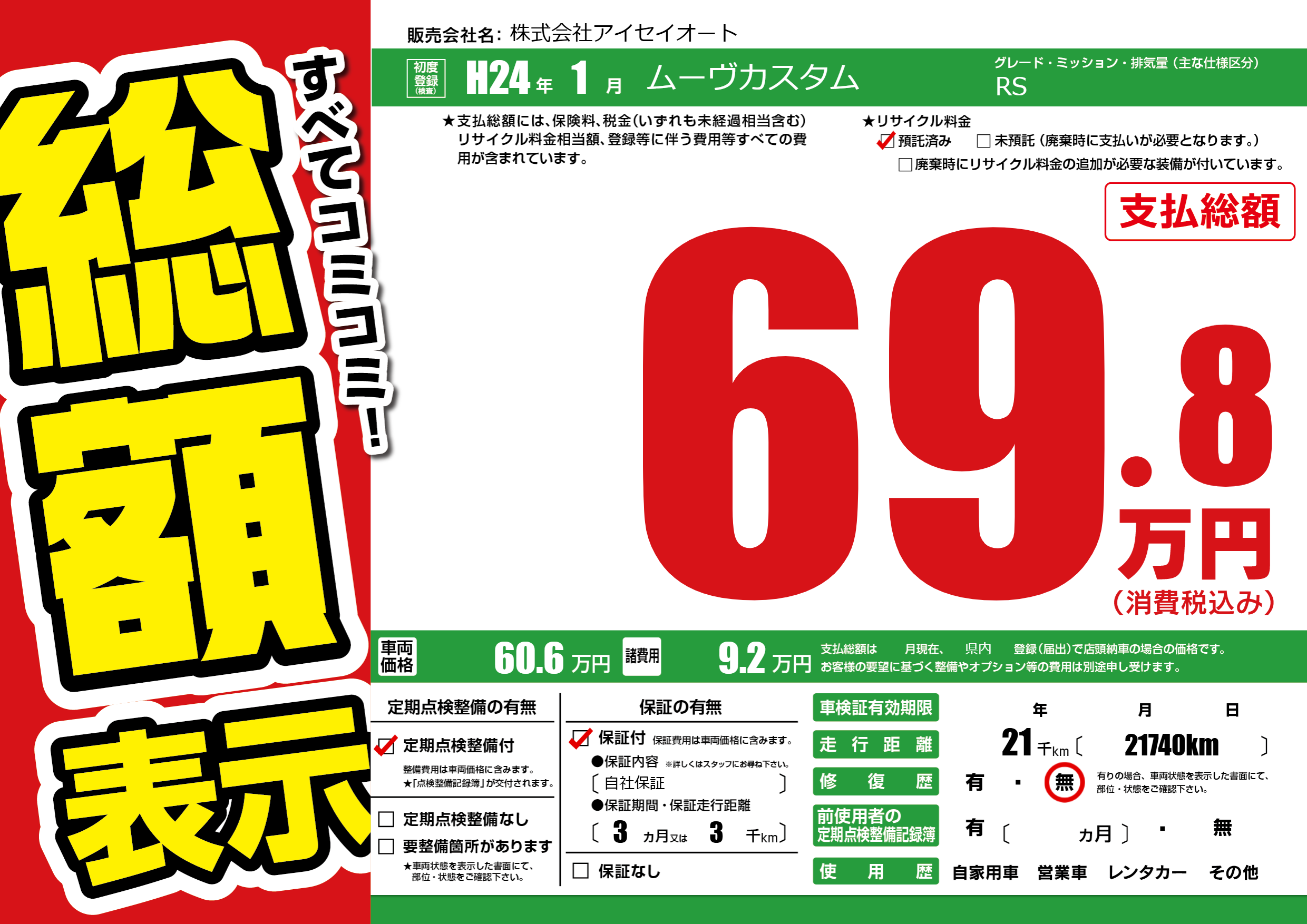 | 定期点検整備 | 定期点検整備あり | ||
